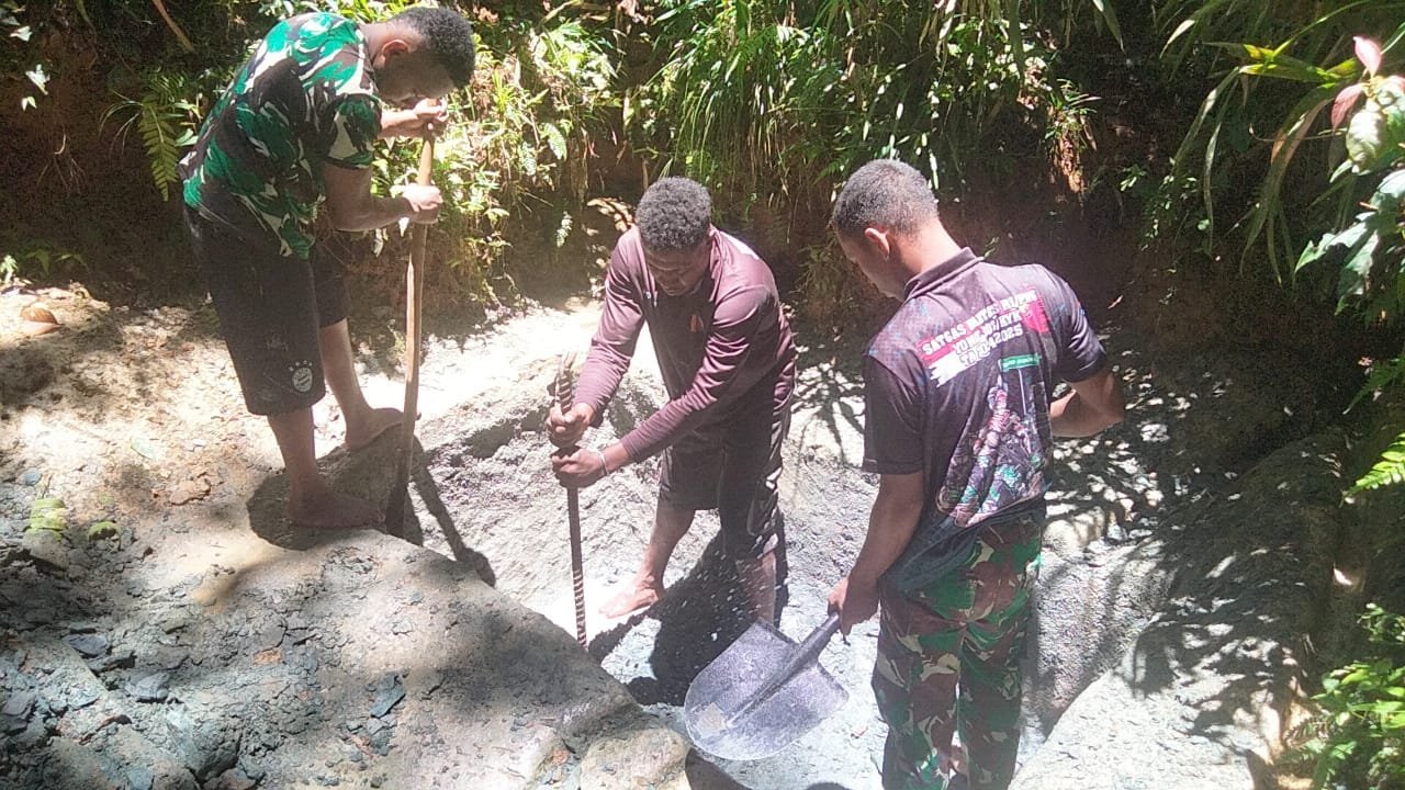 Pantang Menyerah, Satgas TMMD Kodim 1711/BVD Hadapi Batu Keras Demi Air Bersih Warga Waropko