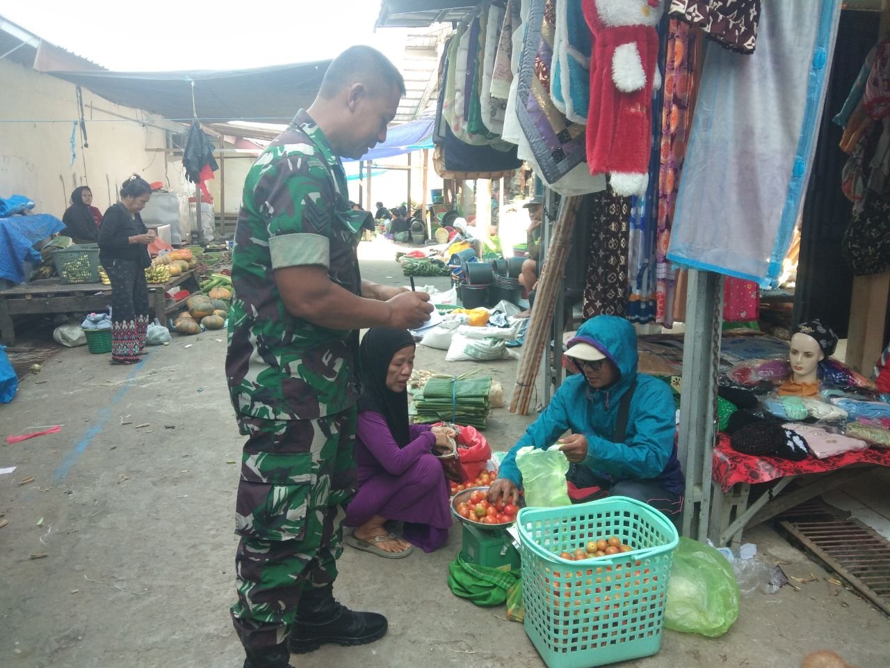 Pantau Stabilitas Harga, Babinsa Koramil 1420-02/Tellu Limpoe Cek Pasar Sentral Amparita
