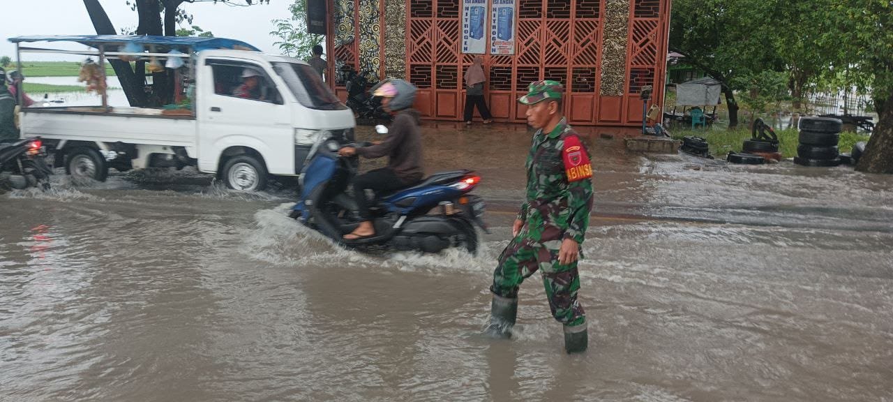 Pasca Hujan Lebat, Babinsa Kodim 1425 Jeneponto Monitoring Banjir di Jl. Poros Jeneponto – Bantaeng