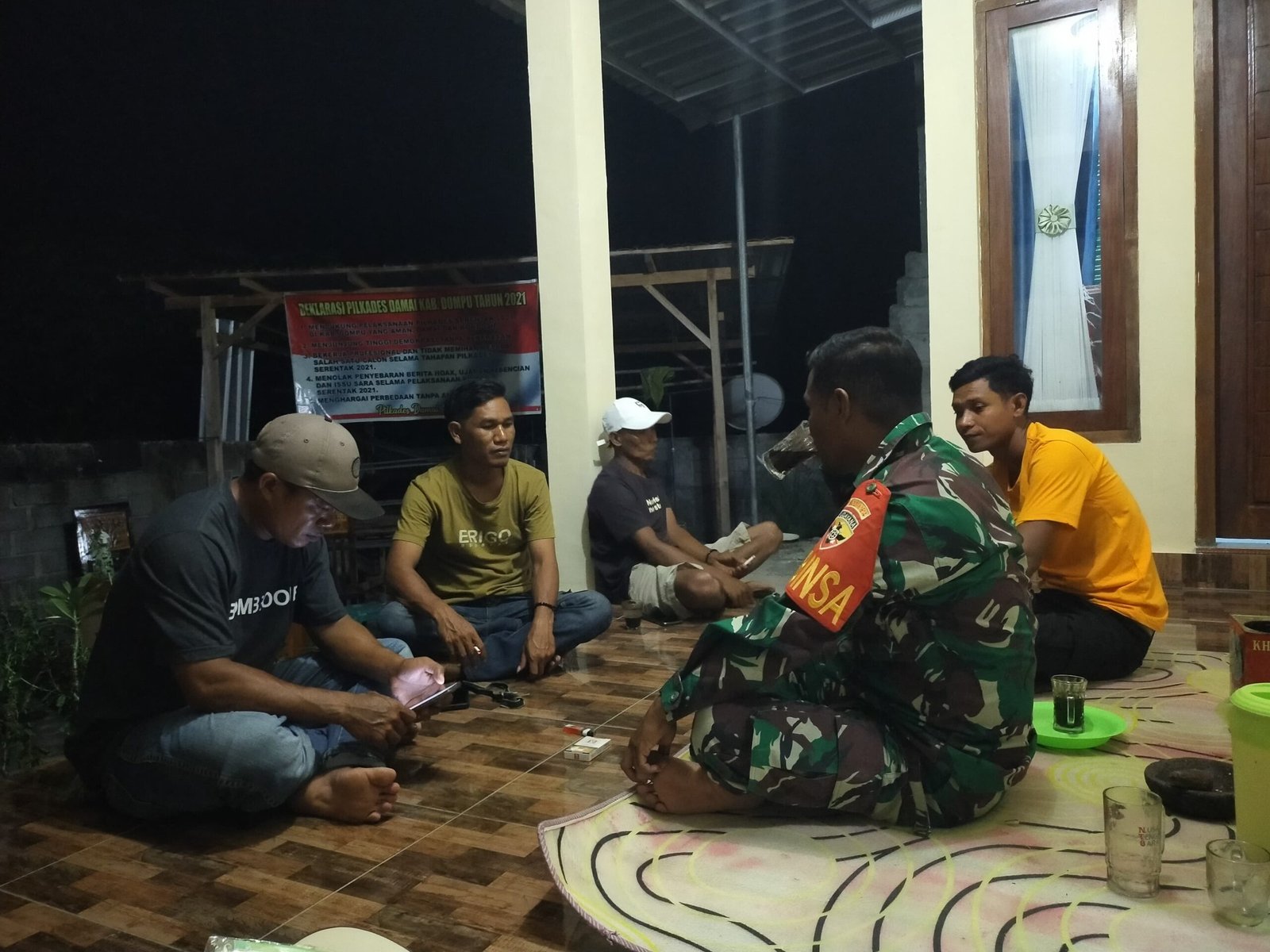 Patroli malam tersebut dimulai di Dusun Sigi, di mana Serka Rustam menyusuri area sekitar sambil berinteraksi dengan masyarakat yang sedang berkumpul. Melalui pendekatan langsung ini, Babinsa tidak hanya melakukan pemantauan situasi, tetapi juga memberikan edukasi mengenai pentingnya kewaspadaan di malam hari.
