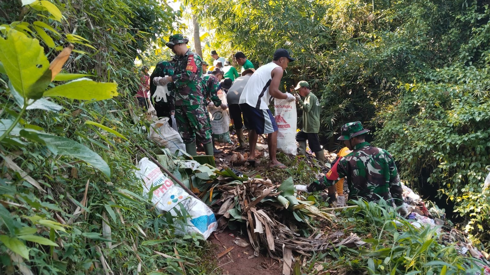 Peduli Lingkungan, Koramil 06/Tersono Bersama Warga Bersihkan Tumpukan Sampah