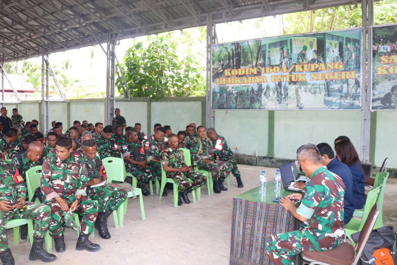 KUPANG, NTT – Kodim 1604/Kupang mengadakan kegiatan pembekalan yang dipimpin oleh Pasiter Mayor Inf Sudirman dan Batiter Pelda Edison untuk para Babinsa yang berada di bawah jajarannya. Kegiatan ini dilaksanakan untuk meningkatkan kemampuan Babinsa dalam melaksanakan tugas sebagai pengawas pembangunan program KDKMP di daerah masing-masing. Sebanyak 71 Babinsa hadir dengan semangat dalam kegiatan yang berlangsung pada Rabu, 1 April 2026.