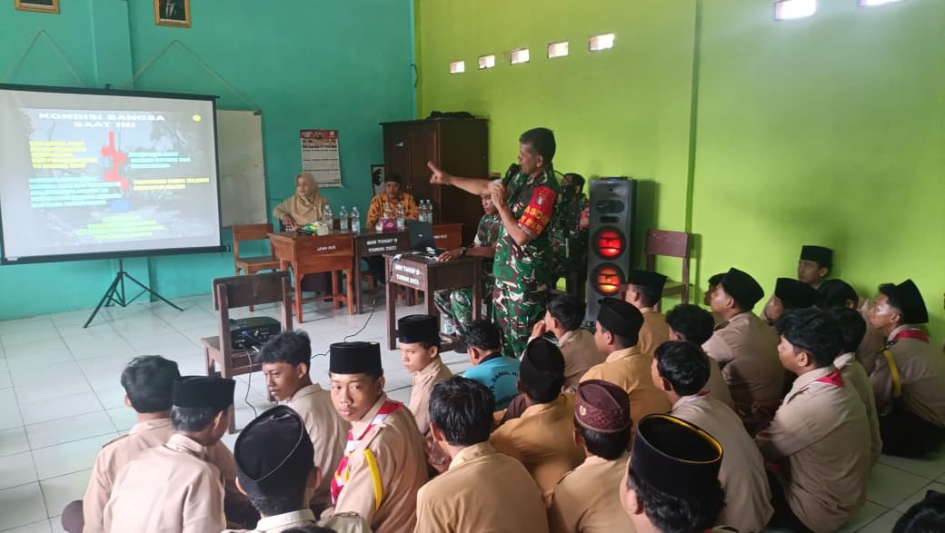 Pangkalan Banteng – Dalam usaha membangun kecintaan terhadap tanah air dan meningkatkan semangat nasionalisme, Satuan Tugas TMMD Ke-128 Kodim 1014/Pbn mengadakan program sosialisasi wawasan kebangsaan di Madrasah Aliyah Darul Hikmah yang berada di Desa Sungai Hijau, Kecamatan Pangkalan Banteng, pada hari Sabtu, 25 April 2026.