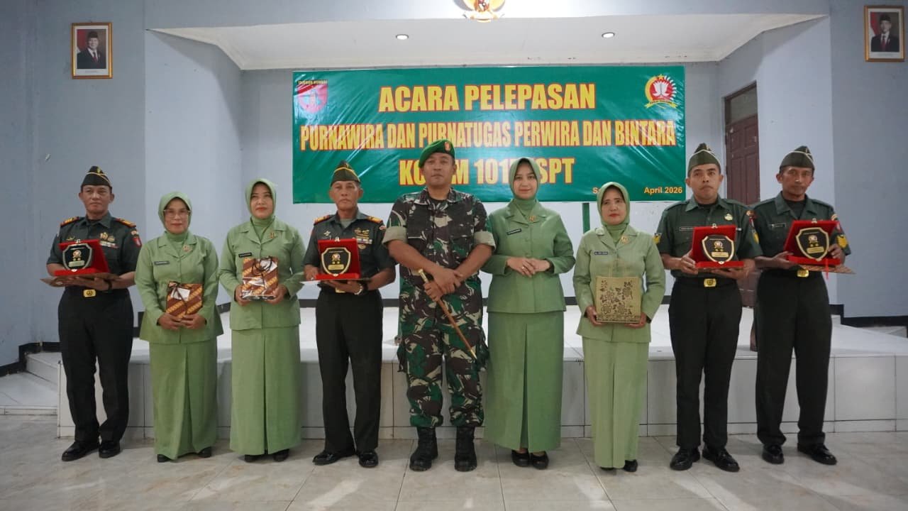Kotawaringin Timur – Letkol Inf Dwi Candra Setyawan, selaku Komandan Kodim 1015/Sampit, memimpin upacara pelepasan Purnawira dan Purnatugas bagi Perwira dan Bintara yang berlangsung di Aula Kementerian Agama Kabupaten Kotawaringin Timur, Jalan Kapten Mulyono, Kecamatan MB Ketapang pada Selasa (7/4/2026) pagi.