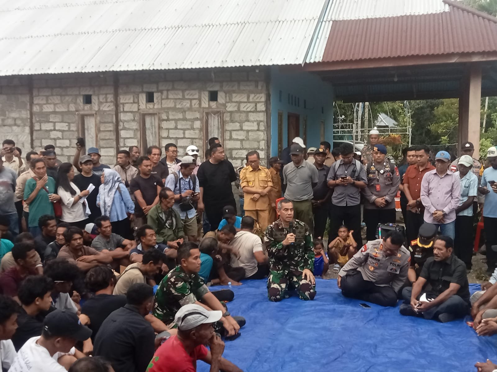 Peletakan batu pertama ini dipimpin oleh Brigjen TNI Enoh Solehudin, S.E., selaku Danrem 152/Baabullah, bersama Irjen Pol. Waris Agono, M.Si., Kapolda Maluku Utara, serta Bupati Halmahera Tengah. Momen ini menjadi simbol keberhasilan mediasi serta kolaborasi antara TNI, Polri, dan Pemerintah Daerah dalam meredakan ketegangan dan mengembalikan stabilitas di daerah tersebut.