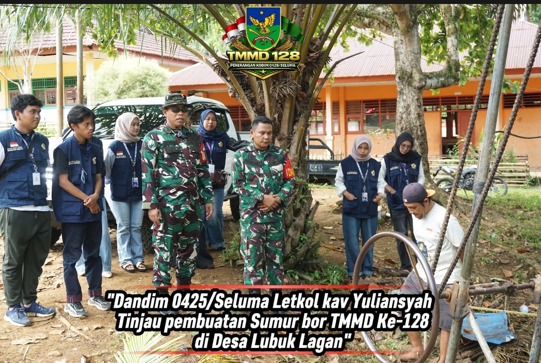 Seluma – Letkol Kav Yuliansyah, selaku Komandan Kodim 0425/Seluma, melakukan survei langsung terkait pembangunan sumur bor dalam program TNI Manunggal Membangun Desa (TMMD) Ke-128 yang berlangsung di Desa Lubuk Lagan, Kecamatan Talo Kecil.