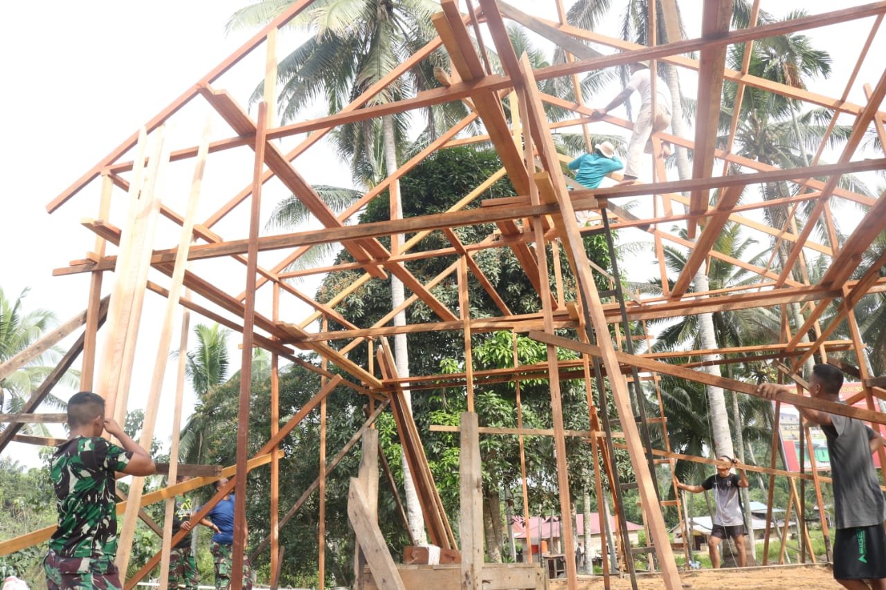 Pemasangan Kerangka Atap TMMD Kutim Bukti Nyata Kepedulian TNI