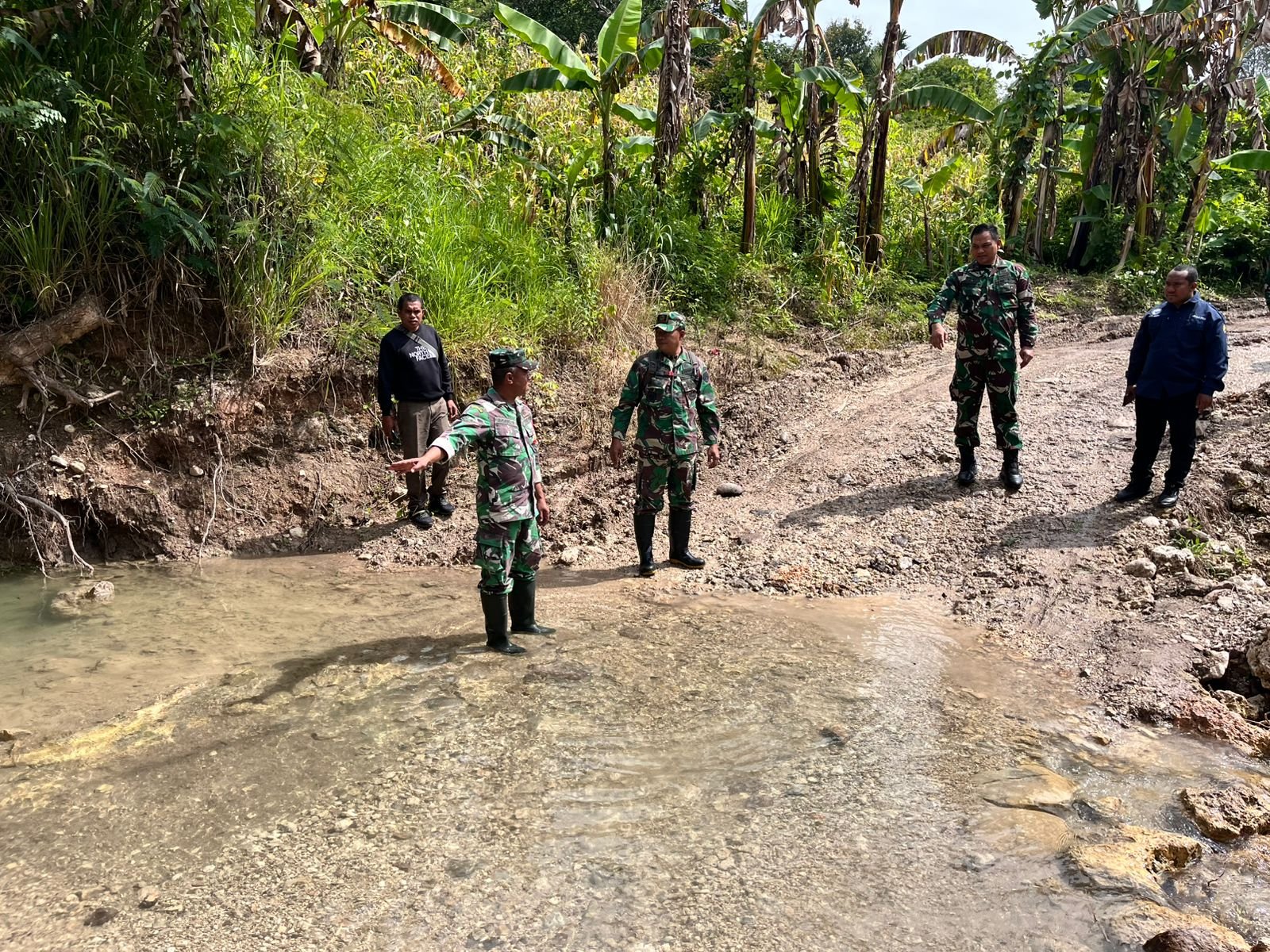 Kota SoE – Letkol Inf Gunawan Budhi Prasetyo, yang menjabat sebagai Komandan Kodim 1621/TTS, melakukan peninjauan ke lokasi yang akan dibangun jembatan Program Kepala Staf Angkatan Darat (Kasad) di RT 008 RW 004, Desa Kuatae, Kecamatan Kota SoE, Kabupaten Timor Tengah Selatan, pada hari Kamis, 5 Maret 2026. Kegiatan ini bertujuan untuk memastikan kesiapan lokasi serta kondisi wilayah yang menjadi titik pembangunan jembatan dari TNI AD.