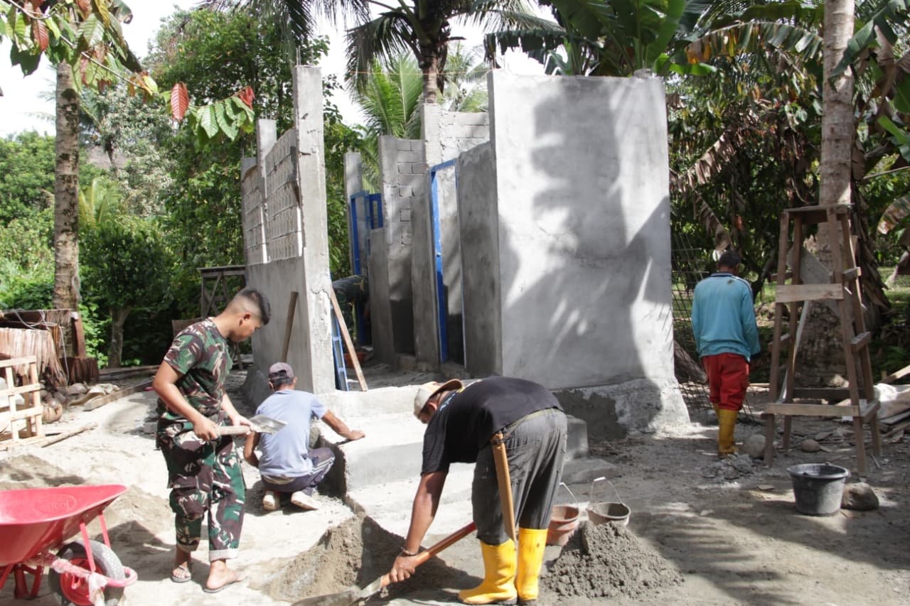 Tolitoli – Tim Satgas TNI Manunggal Membangun Desa (TMMD) ke-127 yang berasal dari Kodim 1305/Buol Tolitoli sedang mempercepat pembangunan fasilitas Mandi, Cuci, Kakus (MCK) di Desa Oyom, Kecamatan Lampasio, Kabupaten Tolitoli pada Kamis (5/3/2026).