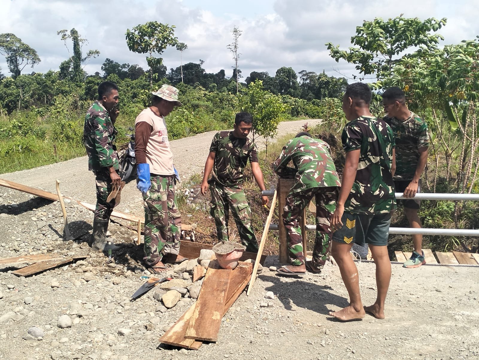Pagar jembatan ini merupakan elemen krusial untuk menjamin keamanan dan kenyamanan masyarakat yang akan melintas di jembatan tersebut. Dengan semangat gotong royong dan dedikasi yang tinggi, personel Kodim 1705/Nabire bersama warga setempat bekerja sama untuk menuntaskan setiap tahapan pekerjaan dengan maksimal.