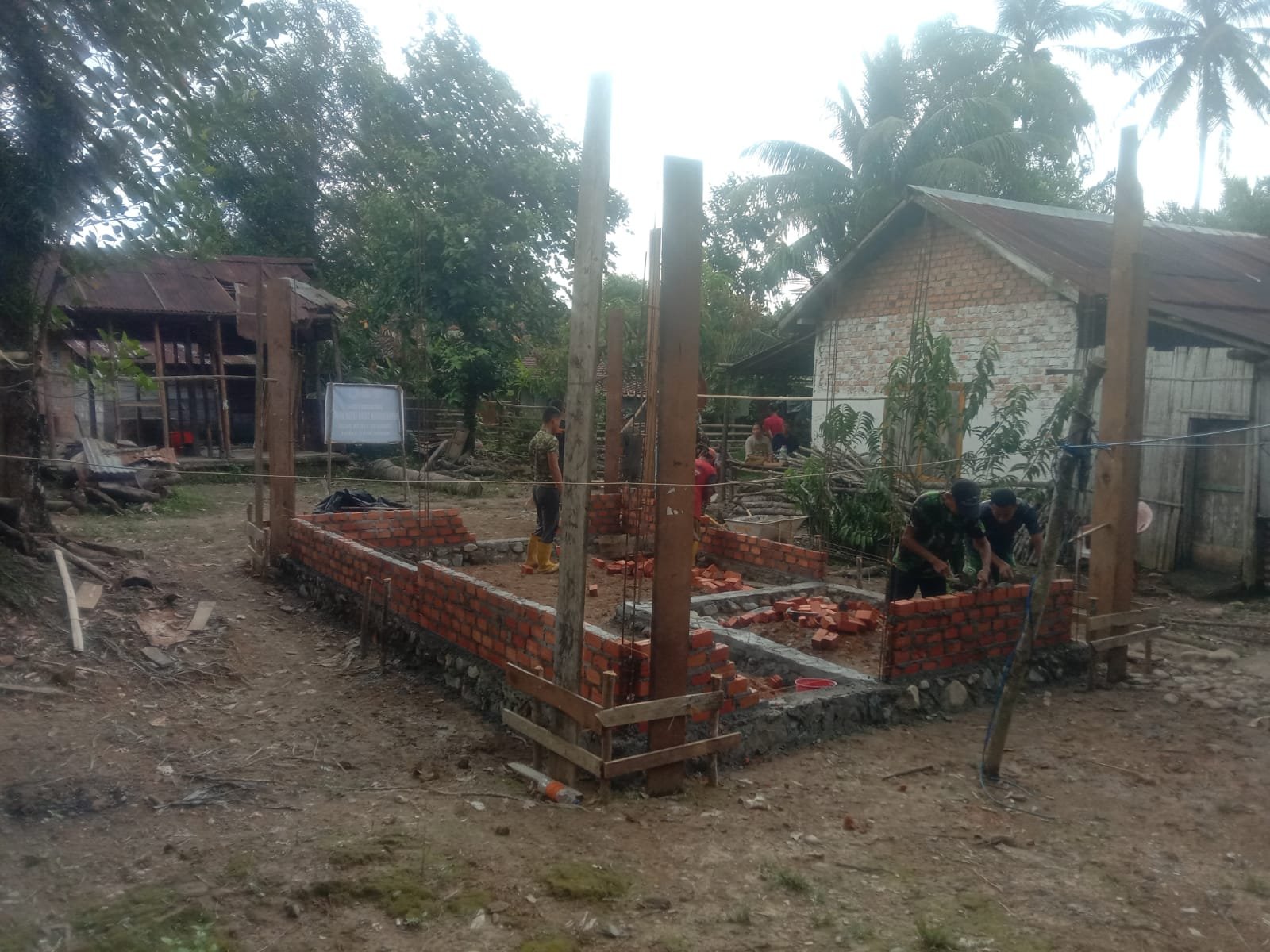 Setelah melewati tahap pembongkaran, proyek pembangunan kini telah memasuki fase baru. Pondasi yang sebelumnya kosong kini telah terbangun kokoh, diikuti dengan pemasangan rangka dinding serta struktur utama. Progres ini menandakan bahwa pelaksanaan TMMD berlangsung sesuai dengan rencana yang ditetapkan.