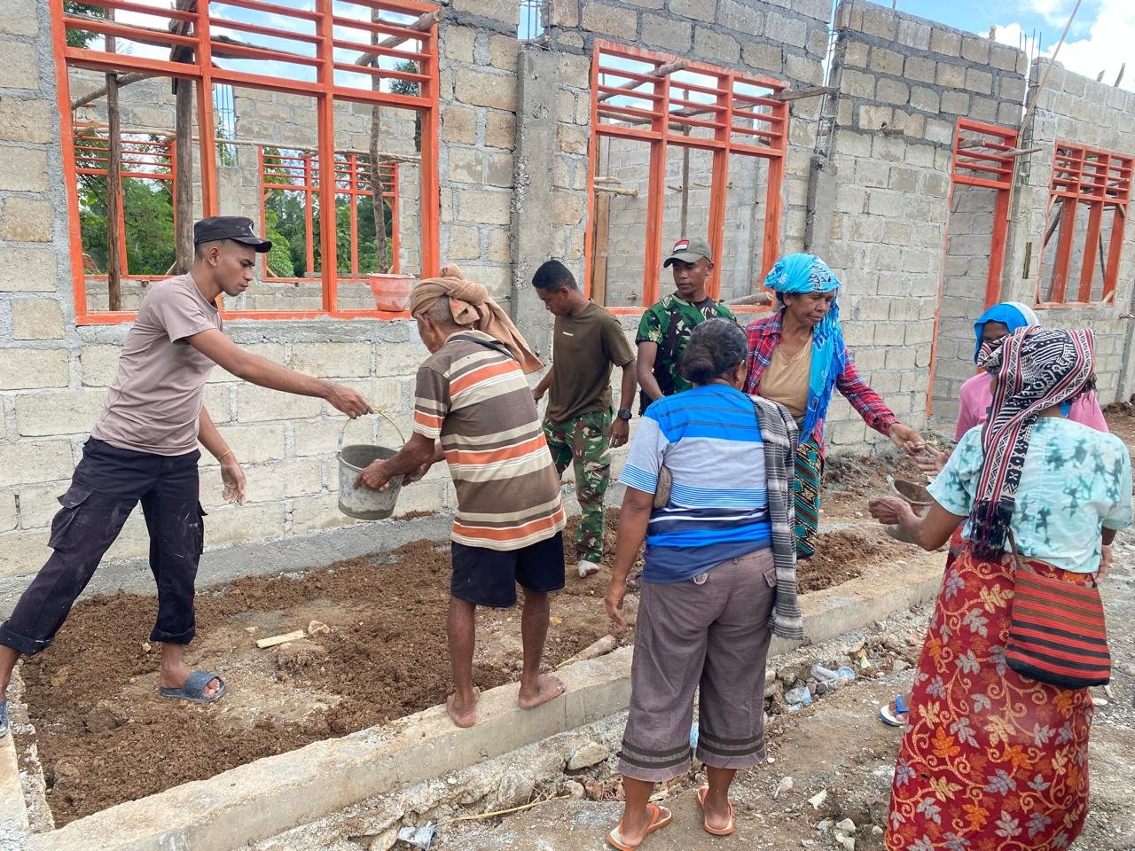 Tahap perataan teras ini sangat penting untuk memastikan struktur bangunan yang kuat dan stabil. Ketelitian dalam pelaksanaan tetap dijaga agar konstruksi sesuai dengan standar yang ditetapkan. Semangat kerja sama antara Satgas dan warga menunjukkan komitmen yang kuat untuk menyelesaikan pembangunan tepat waktu.