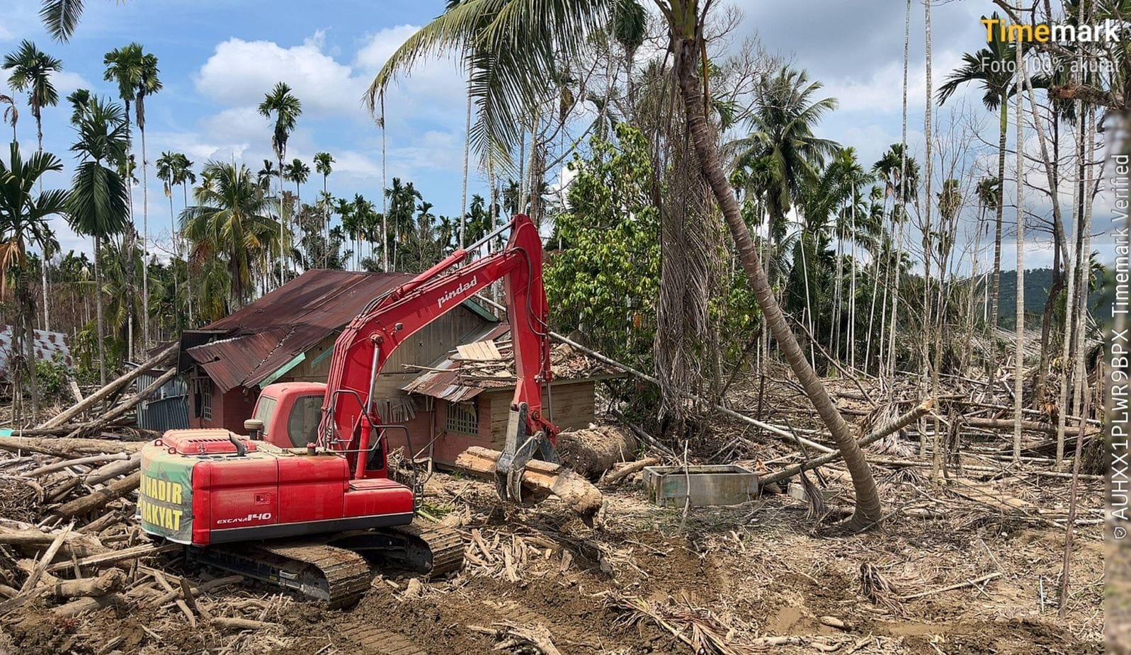 Di area tersebut, alat berat jenis beko terlihat aktif mengangkat tumpukan kayu besar yang berserakan akibat banjir. Pembersihan material kayu yang menghalangi sekitar rumah warga dan kebun menjadi prioritas utama untuk mencegah kerusakan lebih lanjut dan mempercepat pemulihan aktivitas masyarakat.
