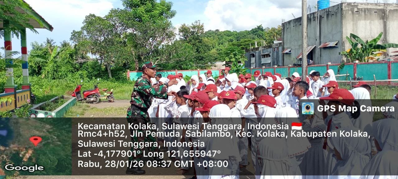 Kolaka, 28 Januari 2026 – Serka Hasanuddin dari Koramil setempat melaksanakan program pembinaan kepada siswa-siswi di SD Negeri 2 Sabilambo. Dalam kegiatan ini, Serka Hasanuddin memberikan materi tentang Peraturan Baris Berbaris (PBB) dan Pembinaan Perilaku Mental (PPM), yang diadakan untuk menanamkan nilai-nilai disiplin dan tanggung jawab di kalangan pelajar.