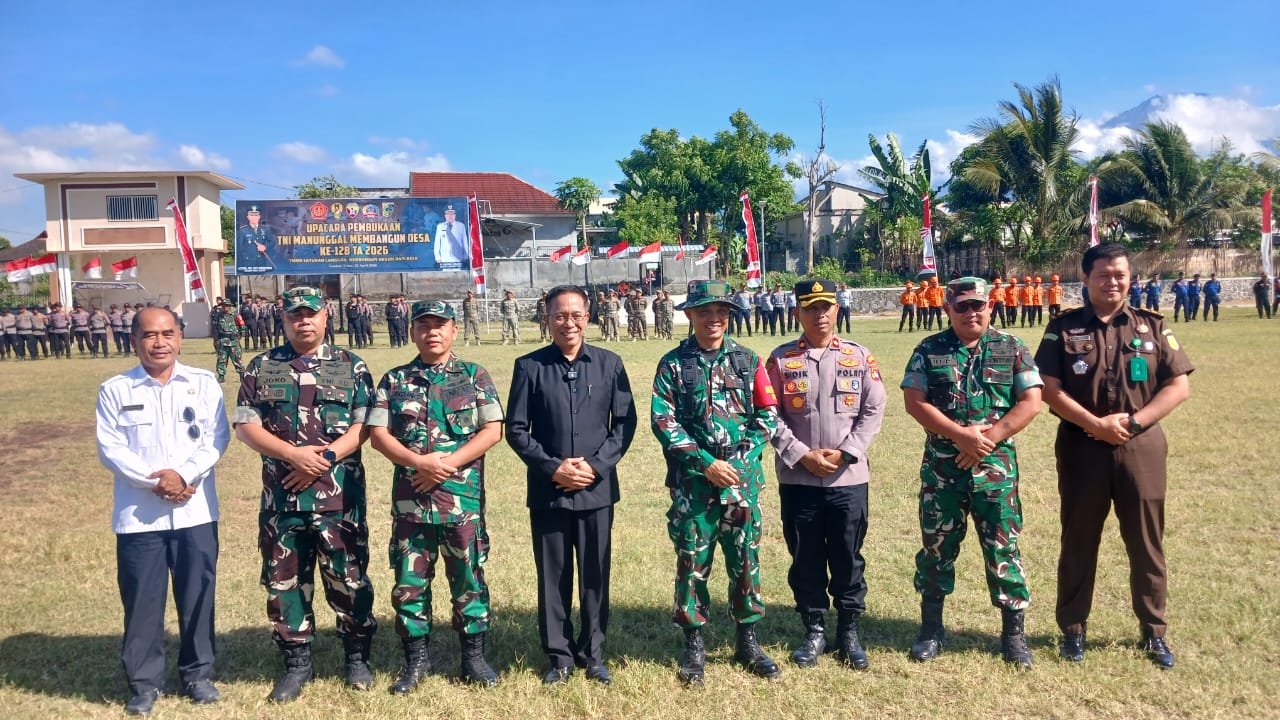 Acara pembukaan TNI Manunggal Membangun Desa (TMMD) ke-128 untuk Tahun Anggaran 2026 oleh Kodim 1615/Lombok Timur digelar di Lapangan Umum Suralaga, Desa Suralaga, Kecamatan Suralaga, Kabupaten Lombok Timur, pada Rabu (22/04/2026).