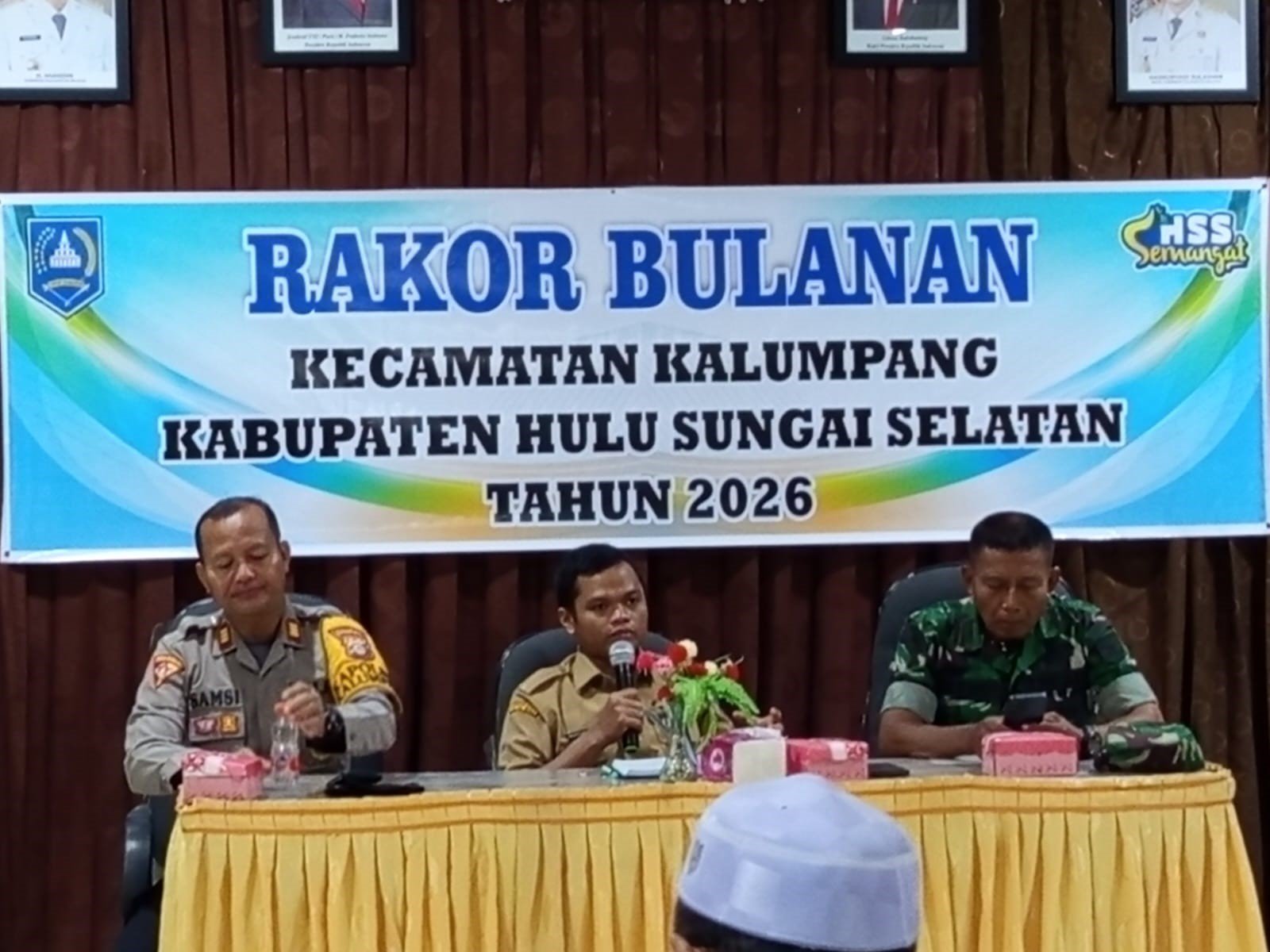 HULU SUNGAI SELATAN – Kecamatan Kalumpang, Kabupaten Hulu Sungai Selatan (HSS), menggelar Rapat Koordinasi (Rakor) lintas sektoral di Aula Kecamatan Kalumpang Kabupaten Hulu Sungai Selatan (HSS) yang dihadiri oleh Kapten Inf Tugino, Danramil 1003-06/Simpur-Kalumpang, bersama pemerintah dan stakeholder setempat. Rabu (28/1/26)