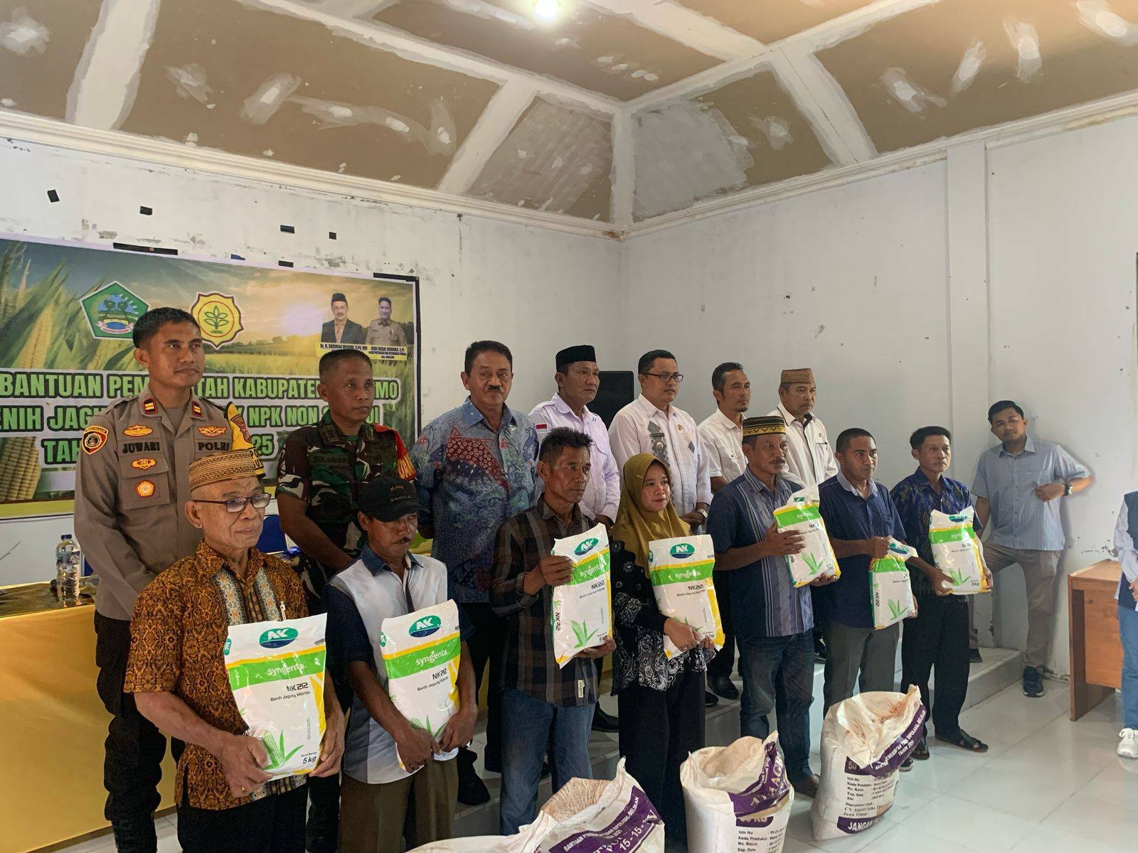 Boalemo – Komandan Rayon Militer (Danramil) 1316-02/Paguyaman, menghadiri kegiatan penyaluran bibit jagung dan pupuk non subsidi yang bersumber dari Anggaran Pendapatan dan Belanja Daerah (APBD). Kegiatan yang dipimpin langsung oleh Penjabat (Pj.) Bupati Boalemo, Drs. Rum Pagau, ini berlangsung dengan aman dan lancar bertempat di Aula Pusat Pelayanan Kepemimpinan (PPK) Kecamatan Paguyaman, Kabupaten Boalemo, pada hari ini, Selasa, 14 Mei 2025.