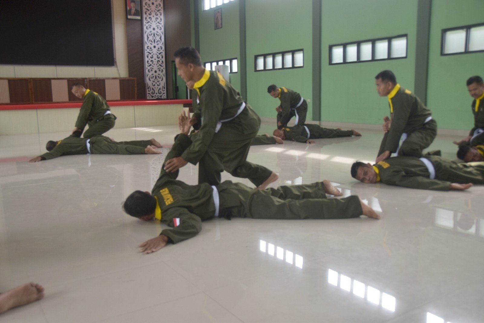 HULU SUNGAI SELATAN – Guna meningkatkan ketahanan fisik, disiplin, mental, dan profesionalisme prajurit, sekaligus melestarikan budaya bangsa, serta membentuk karakter ksatria yang Tangguh, Kodim 1003/Hulu Sungai Selatan (HSS) secara rutin gelar latijan Pencak Silat Militer (PSM) yang berlokasikan di markasnya Jl. A. Yani Kelurahan Kandangan Kota, Rabu (4/3/26)