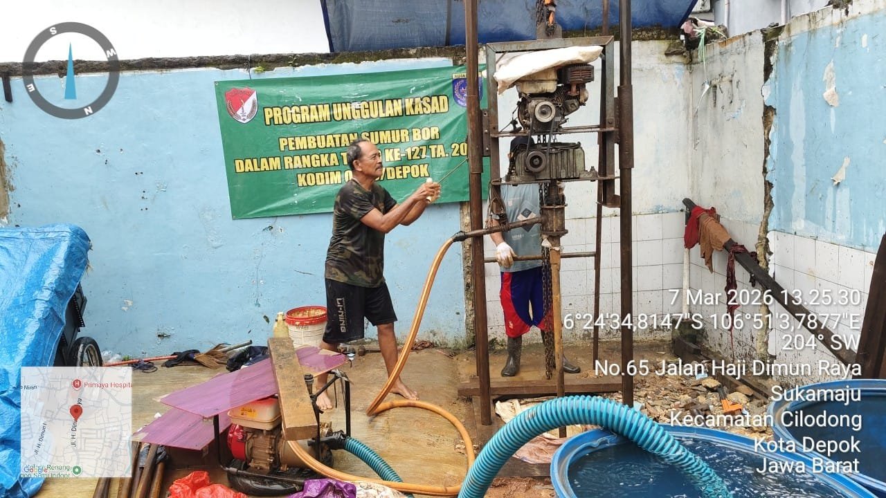 Depok – Pada hari ke-27 pelaksanaan TMMD Ke-127 Tahun Anggaran 2026, Kodim 0508/Depok melaporkan pencapaian yang signifikan dalam program penyediaan air bersih. Pada Senin (09/03/2026), pembangunan sumur bor di Posyandu Mekarsari telah selesai sepenuhnya.