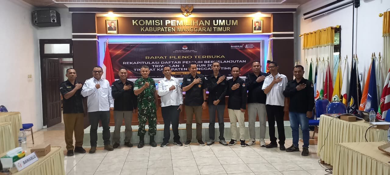 Borong – Untuk meningkatkan akurasi data pemilih, penyelenggara pemilu di Kabupaten Manggarai Timur mengadakan Rapat Pleno Terbuka guna menetapkan Rekapitulasi Daftar Pemilih Berkelanjutan (DPB) Triwulan I Tahun 2026. Kegiatan ini berlangsung pada 1 April 2026 di Kantor KPU Kabupaten Manggarai Timur, yang berlokasi di Kelurahan Ranaloba, Kecamatan Borong.