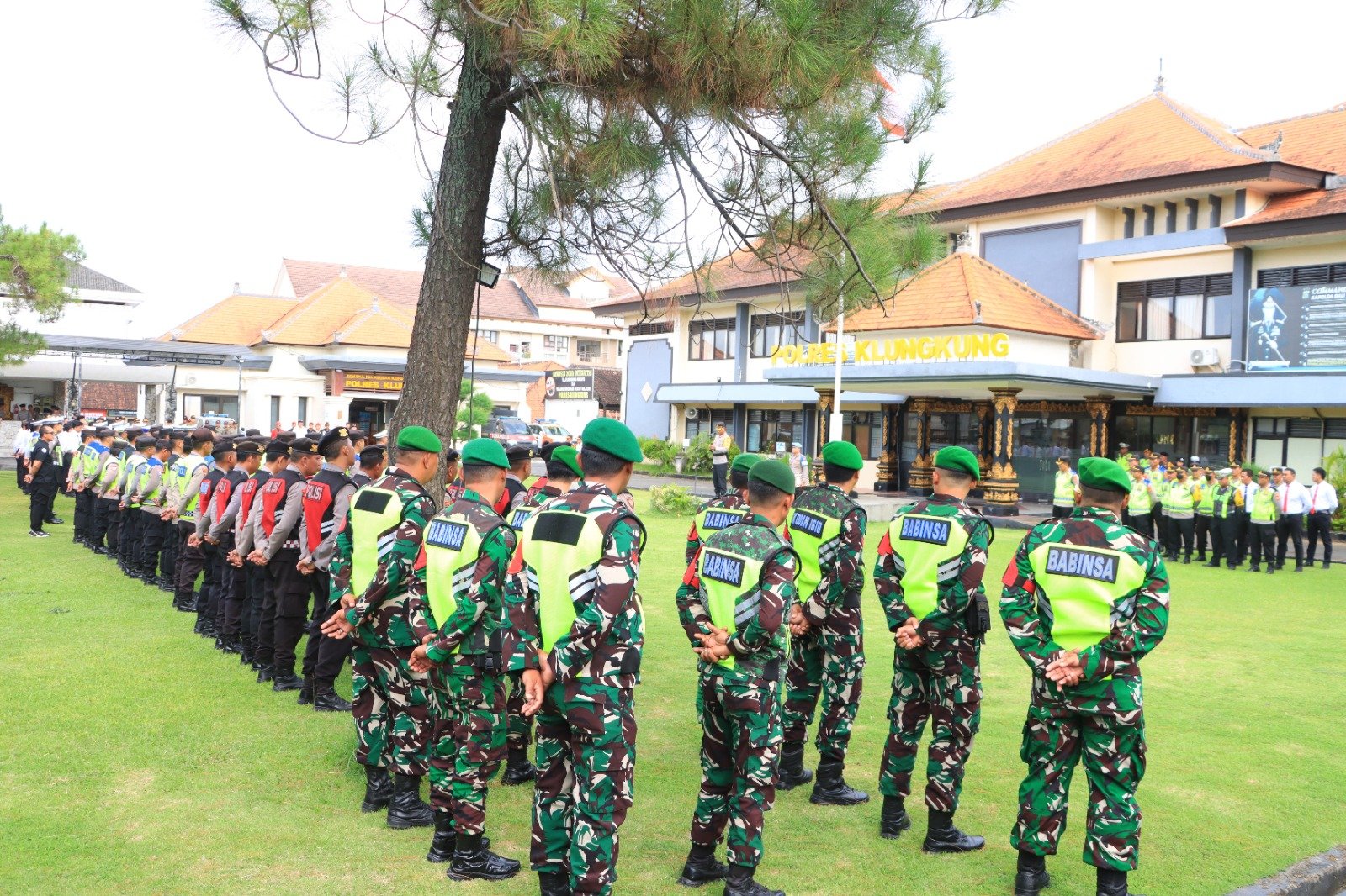 Klungkung, 31 Desember 2025 – Menyongsong perayaan malam Tahun Baru 2026, aparat gabungan dari TNI dan Polri di Kabupaten Klungkung menunjukkan kesiapan penuh dalam menjaga keamanan dan ketertiban masyarakat. Apel Pergeseran Pasukan Pengamanan dilaksanakan di Lapangan Apel Polres Klungkung, dihadiri oleh berbagai instansi seperti Satpol PP, Dishub, dan pecalang, dengan dipimpin oleh Kapolres Klungkung, AKBP Alfons W P Letsoin, S.I.K.