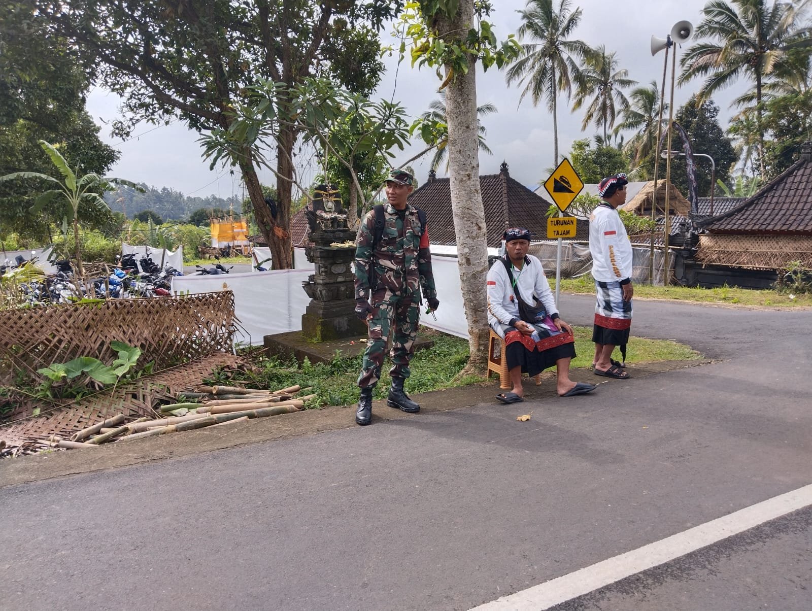 Bangli – Dalam rangka memastikan kelancaran dan keamanan Upacara Pujawali yang dilaksanakan di Pura Dalem Banjar Adat Songlandak, Desa Pengiangan, Kecamatan Susut, Kabupaten Bangli, Babinsa setempat, Sertu I Gede Sukadana, melaksanakan tugas pengamanan pada tanggal 4 November 2023. Kegiatan ini dihadiri oleh ratusan umat Hindu yang datang untuk melaksanakan persembahyangan.
