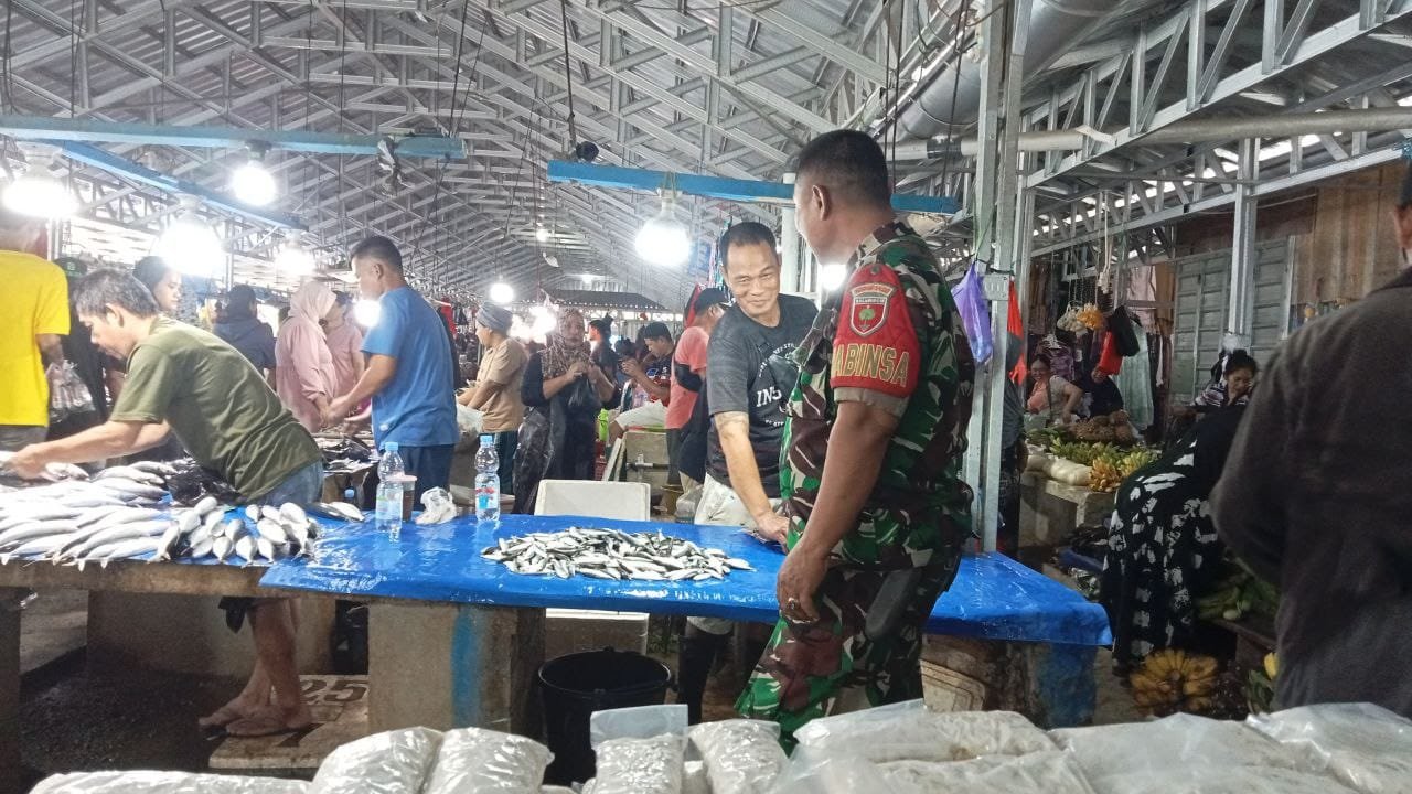 Serma Irwan, sebagai Babinsa Koramil 04/Watang Pulu, melakukan inspeksi mendadak (sidak) serta pengecekan harga di Pasar Tradisional Lawawoi, yang terletak di Kelurahan Bangkai, Kecamatan Watang Pulu, Kabupaten Sidrap.