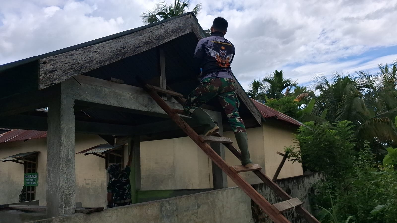 Personel Satgas TMMD terlihat melakukan pengecatan serta pembersihan lingkungan penampungan air bersih. Kegiatan tersebut dilakukan guna memastikan fasilitas air bersih yang dibangun dapat dimanfaatkan secara maksimal dan tahan lama.