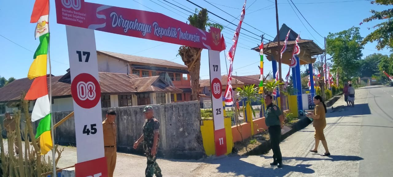 SUMBA BARAT – Danramil 01/Loli Kodim 1613/Sumba Barat, Kapten Inf I Nyoman Sukada, bersama Camat Kota Waikabubak didampingi Babinsa dan staf kecamatan, melaksanakan pengecekan gapura serta kebersihan kelurahan di wilayah Kecamatan Kota Waikabubak, Kabupaten Sumba Barat, Senin (11/8/2025).