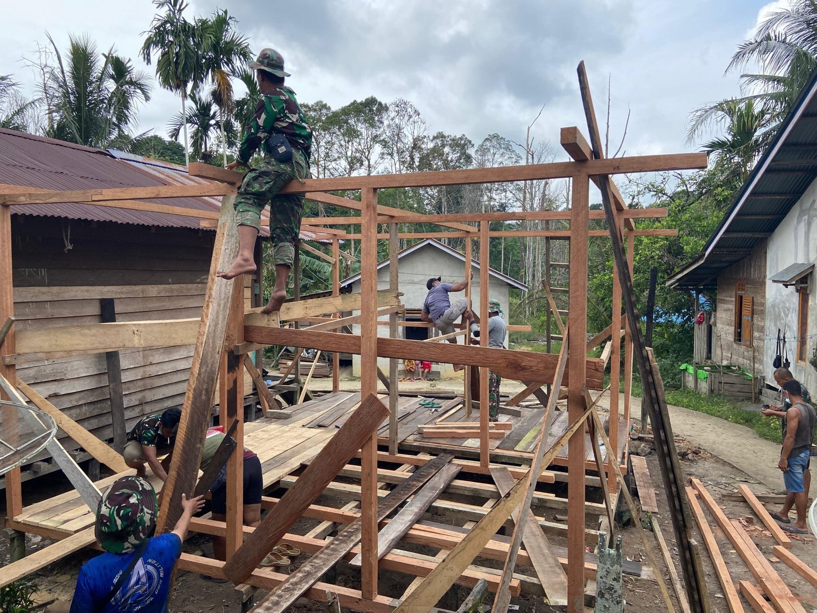 Sintang – Program TNI Manunggal Membangun Desa (TMMD) ke-125 Kodim 1205/Sintang terus berjalan dengan progres yang signifikan. Salah satu sasaran fisik utama, yaitu rehabilitasi Rumah Tidak Layak Huni (RTLH), kini telah memasuki rumah kedua yang tengah dalam tahap percepatan pengerjaan,(29/7/2025).
