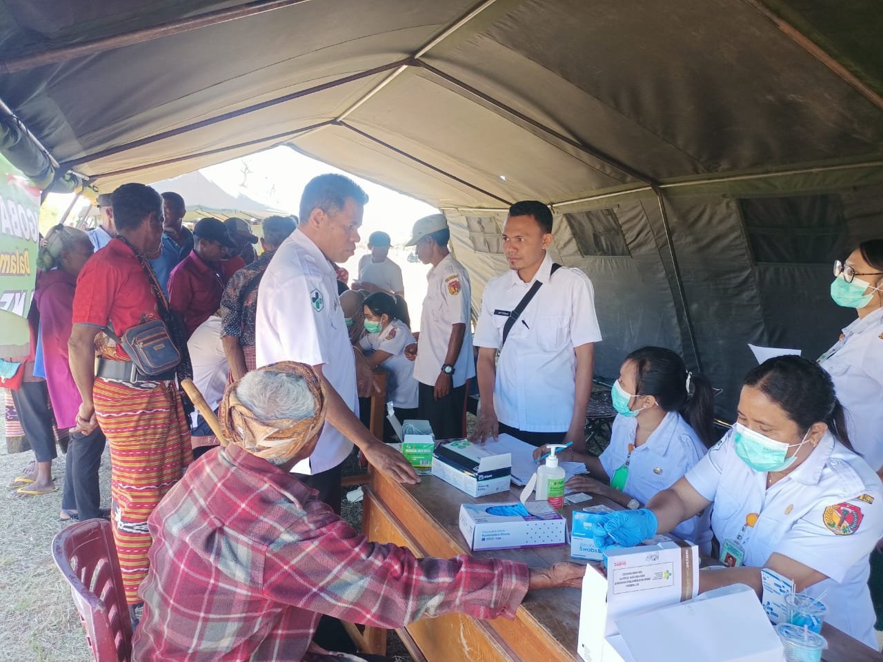 Antusiasme masyarakat tersebut terlihat saat penuhi tenda yang dikhususkan untuk kegiatan layanan kesehatan gratis yang bekerjasama dengan Puskesmas Tasifeto Barat.