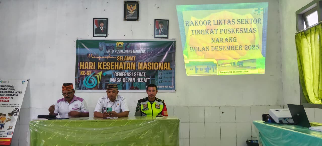 Satarmese Barat – Untuk meningkatkan layanan kesehatan masyarakat, Koramil 1612-05/Satarmese, yang diwakili oleh Serda Junaidin dan Pratu Gregorius Juang, turut serta dalam rapat koordinasi lintas sektor di Puskesmas Narang. Kegiatan ini berlangsung pada Kamis, 22 Januari 2026, di Aula Puskesmas Narang, Desa Hilihintir, Kecamatan Satarmese Barat.