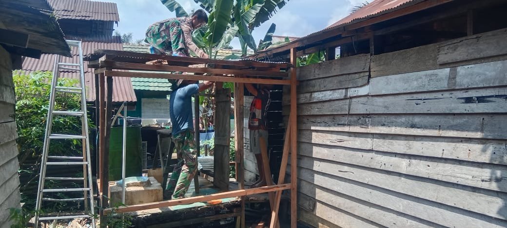 Salah satu sasaran fisik berupa perehaban 1 unit RTLH kini telah mencapai progres 50%. Proses pembangunan dilaksanakan secara bergotong royong antara personel TNI dan warga sekitar dengan semangat kebersamaan yang tinggi.
