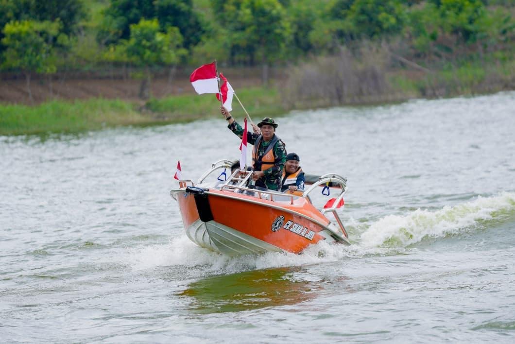 Suasana berbeda tampak di bendungan yang selama ini menjadi salah satu ikon sumber daya air di Kudus. Deretan perahu motor yang ditumpangi para prajurit TNI melaju gagah membelah air, dengan kibaran bendera merah putih yang berkibar megah di tengah hamparan langit biru. Kehadiran para prajurit ini tidak hanya menambah semarak perayaan kemerdekaan, tetapi juga meneguhkan pesan kuat tentang nasionalisme yang tak pernah padam di dada setiap insan TNI.