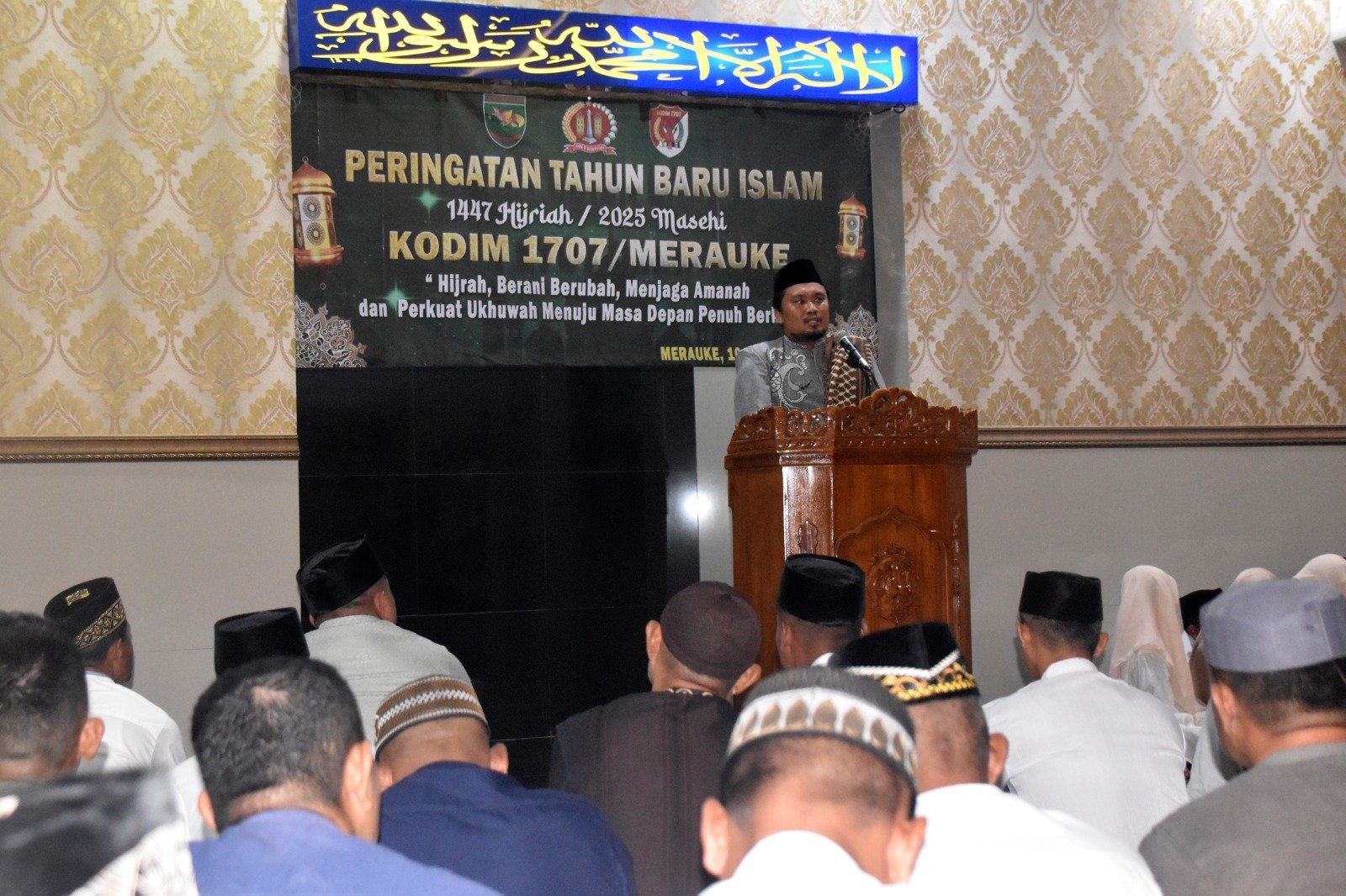 Dengan mengangkat tema ”Hijrah, Berani, Berubah, Menjaga Amanah dan Penguat Ukhuwah Menuju Masa Depan Penuh Berkah” kegiatan dipimpin langsung oleh Komandan Kodim 1707/Merauke Letkol Inf Johny Nofriady, S.E., M.Han yang dihadiri puluhan Prajurit TNI, PNS serta keluarga besar Kodim 1707/Merauke.