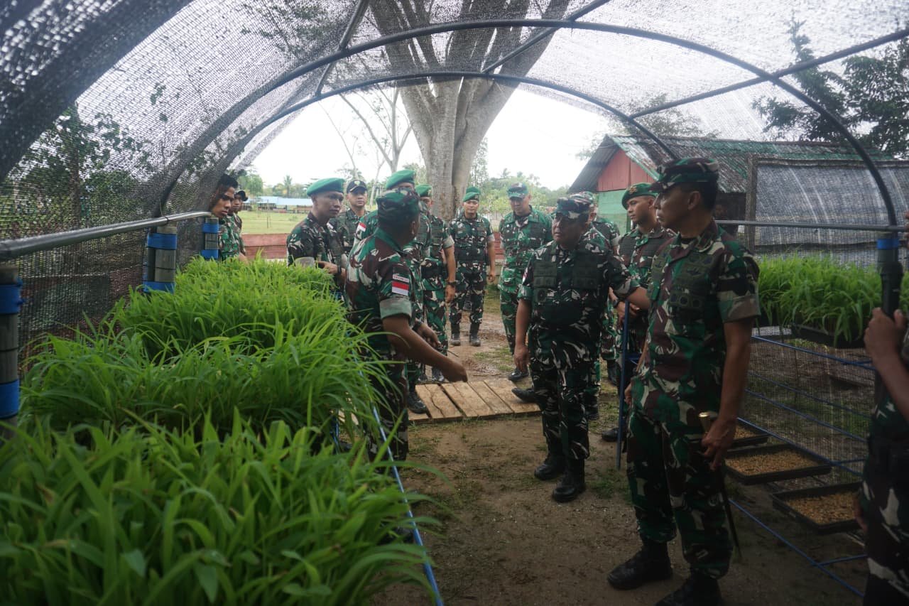 Didampingi Brigjen TNI Eventius Teddy Danarto (Kasdam XXIV/MT), Brigjen TNI Dwi Endro Sasongko, S.Sos., M.I.P (Irdam XXIV/MT) beserta rombongan, Pangdam meninjau langsung Marseling Area Yonif TP 817/Aoba yang dikembangkan sebagai sentra produktif satuan. Berbagai program ketahanan pangan dikelola oleh prajurit, meliputi peternakan kambing, sapi, ikan lele, ayam potong, ayam kampung, dan ayam petelur, serta perkebunan satuan yang ditanami beragam komoditas.