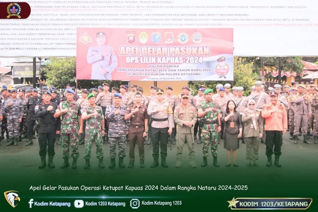 Ketapang – Dalam rangka mendukung pengaman Nataru 2024-2025, Kodim 1203/Ktp mengikuti Apel Gelar Pasukan Operasi Kepolisian Terpusat “Lilin Kapuas 2024” di Halaman Mapolres Ketapang. Jum’at (20/12/2024)