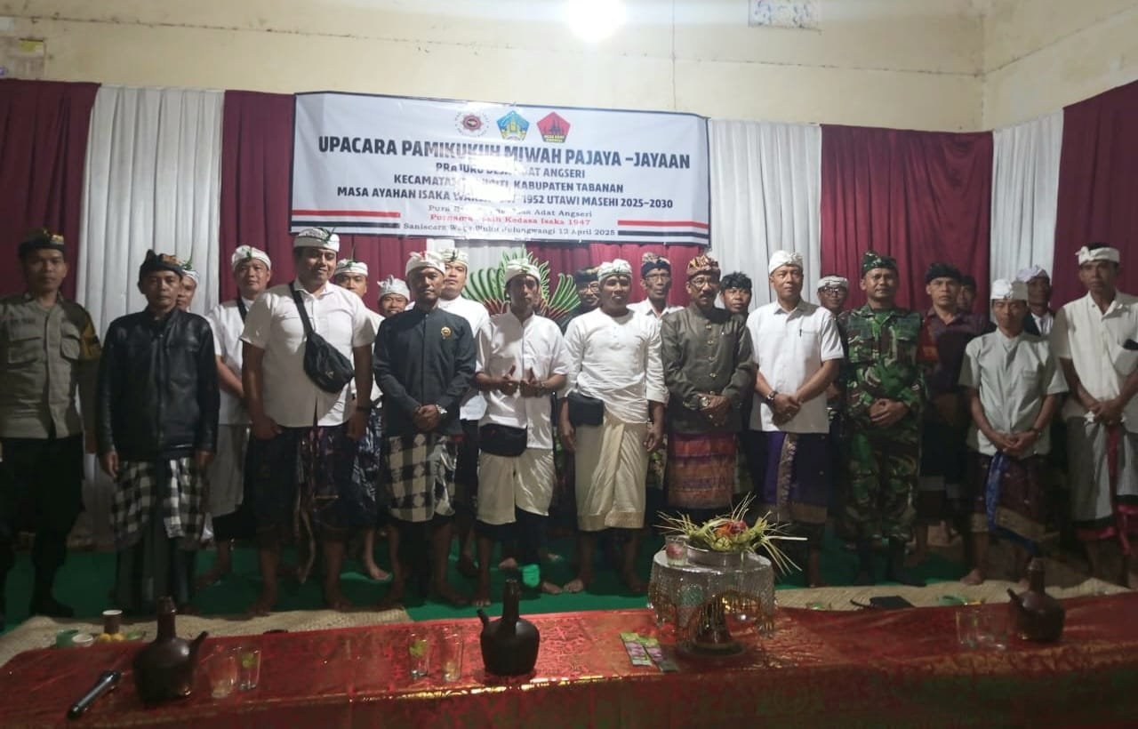 Tabanan – Dalam upaya mempererat hubungan antara aparat keamanan dengan masyarakat adat, Danramil 1619-07/Baturiti Kapten Inf Nyoman Sujana S.Adm hadir dalam acara Pengukuhan dan Pejaya-jaya Prajuru Desa Adat dan Bendesa Adat di Balai Banjar Desa Adat Angseri, Desa Angseri, Kec. Baturiti, Kab. Tabanan, Sabtu Malam (12/4/2025)
