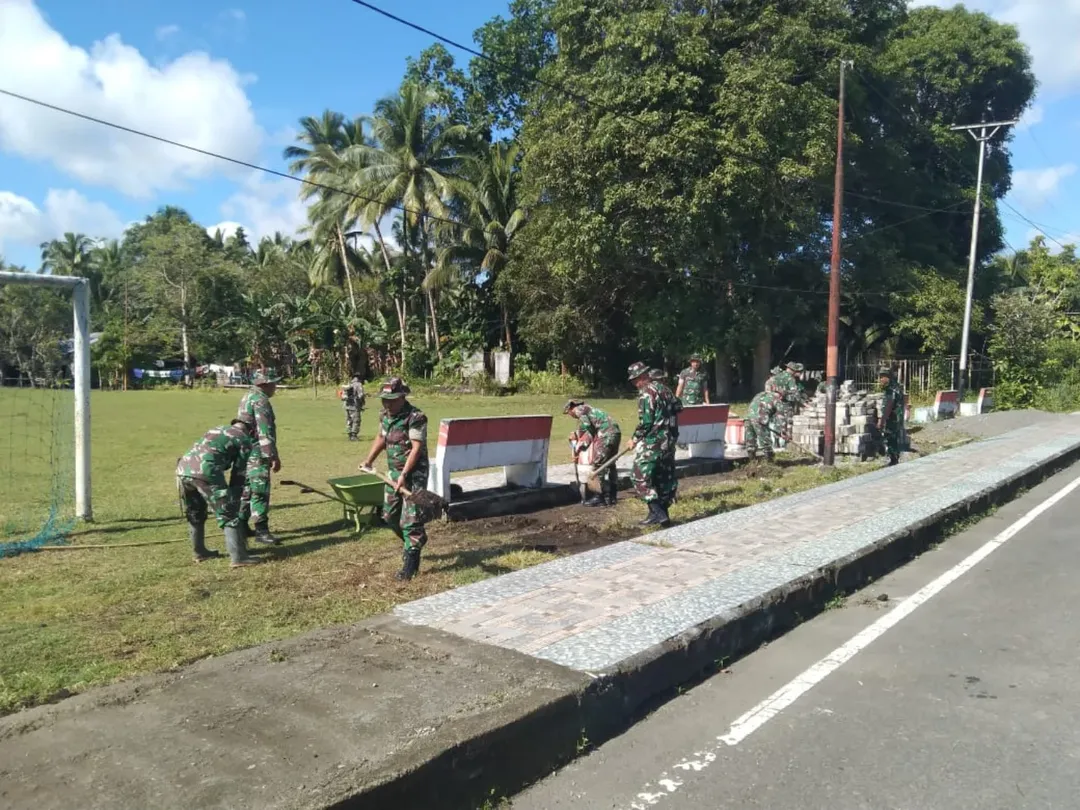 Sangihe, Plh Danramil1301-07/Tabut Serma Ridatson Makawowode Bersama Anggota Koramil1301- 07/Tabut melaksanakan Giat kerja Bakti Bertempat di Kampung Naha Induk Kecamatan Tabukan Utara Kabupaten Kepulauan Sangihe dalam rangka pembersihan Lapangan Bola untuk persiapan Upacara pembukaan kegiatan TMMD ke124. Kamis 01/05/2025