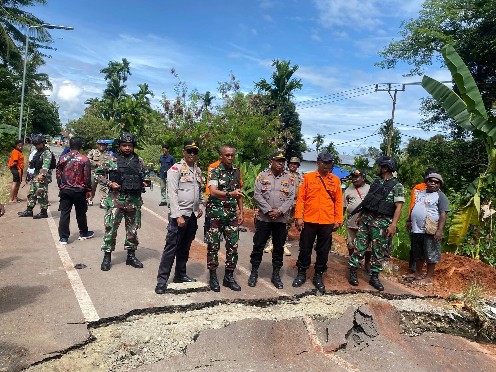 Nabire ~ Personel Kodim 1705/Nabire turun langsung ke lapangan untuk memantau kondisi beberapa titik lokasi yang terdampak bencana alam gempa bumi di wilayah Kabupaten Nabire, Jumat (19/09/2025).