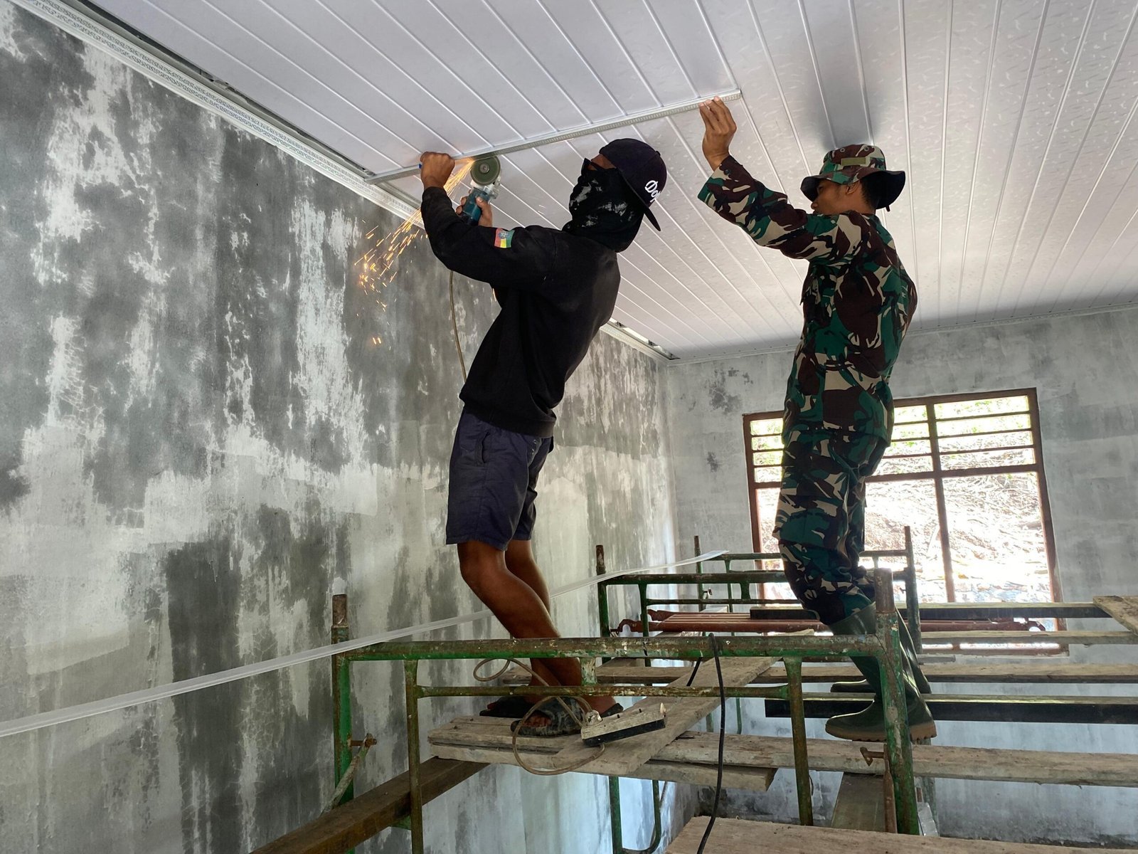Proses pemasangan dilakukan dengan penuh ketelitian agar plafon dapat terpasang rapi, kokoh, dan tahan lama. Kekompakan antara TNI dan warga Desa Lanaus dalam pengerjaan ini menunjukkan semangat gotong royong yang masih kental.