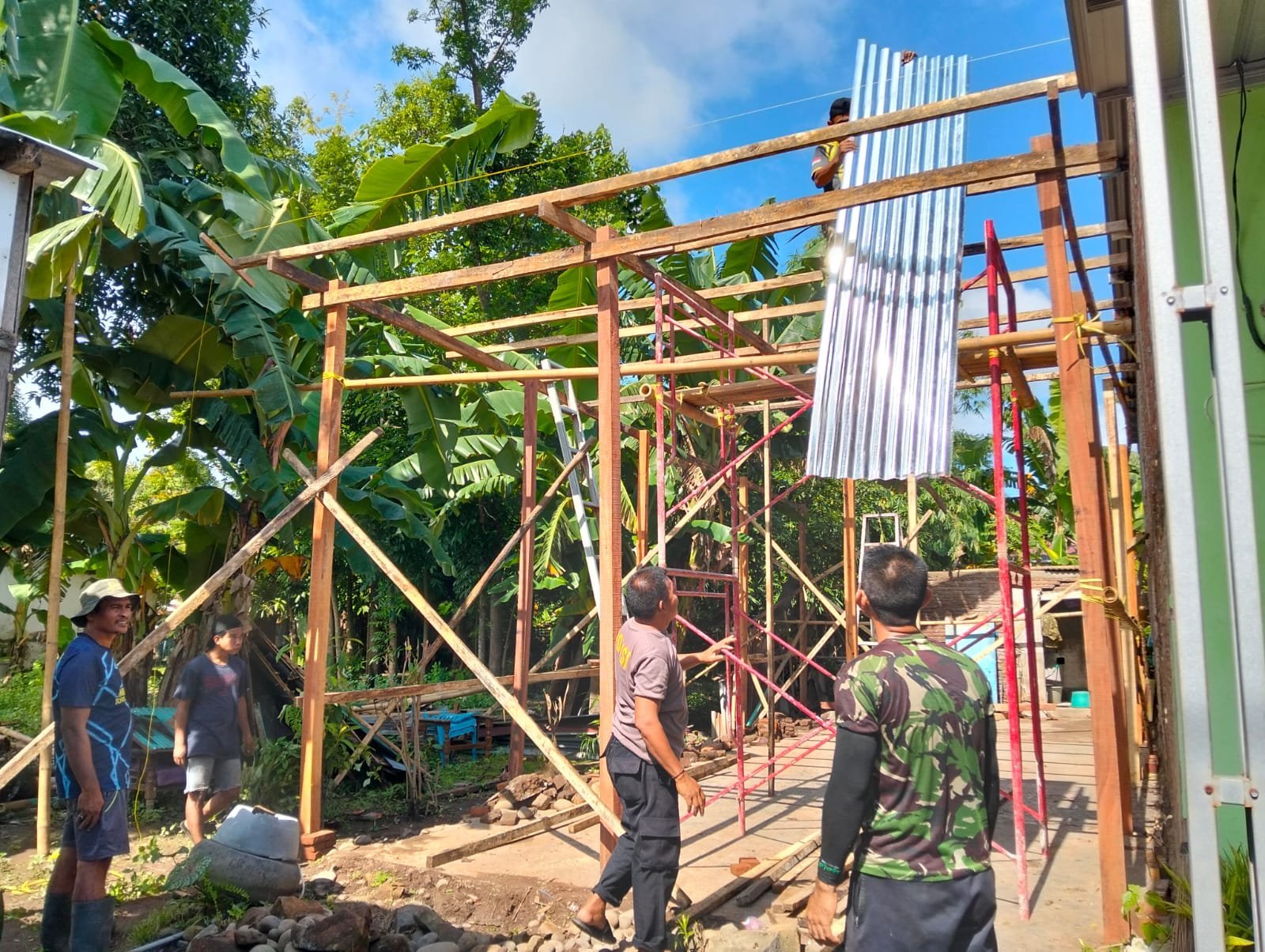 TAKALAR – Personel Tukang Kodim 1426/Takalar bersama warga tetap semangat dalam melaksanakan kegiatan sosial rehab Rumah Tidak Layak Huni (RTLH). Program Kodim 1426 Takalar bekerjasama dengan Pemda Takalar ini ditempatkan di rumah Sdri. Suciati Dusun Bontorita Raya Desa Bontomangape Kecamatan Galesong Kabupaten Takalar, Jum’at (31/01/2025).