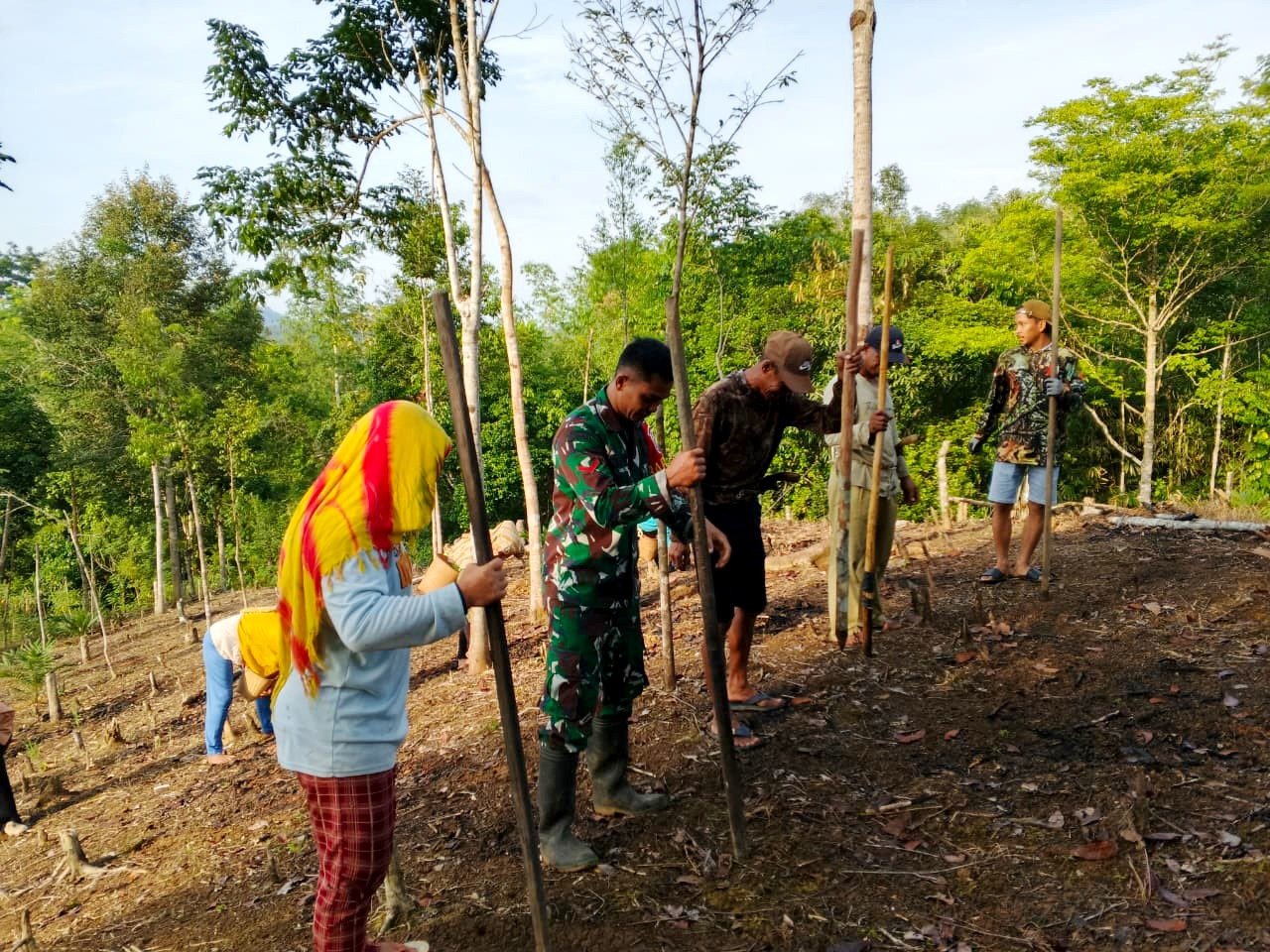 Saat dikonfermasi Kopda Herlan memberikan keterangan masyarakat yang bermukim di lereng pegunungan masih mengandalkan tradisi gotong royong Manugal dalam bercocok tanam kususnya padi, “Masyarakat dengan cara bergiliran bergotong royong saling bahu membahu dalam bertani, apabila sudah selesai disalah satu lahan masyarakat akan berpindah lokasi yang tentunya lahan yang sudah siap untuk ditanam” ucap Kopda Herlan