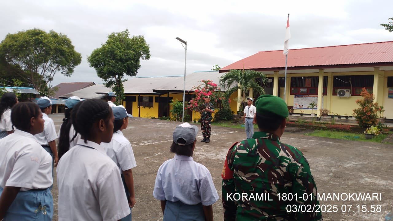 “ini merupakan komitmen perhatian dari instansi pemerintah khususnya Kodim 1801/Manokwari melalui peran Koramil, bisa berkolaborasi dalam membina siswa sekolah khususnya dalam membentuk sikap dan disiplin para siswa, anak anak tentu memiliki kebanggaan dan menambah kepercayaan diri atas hadirnya bapak TNI di sekolah kami.” tutupnya