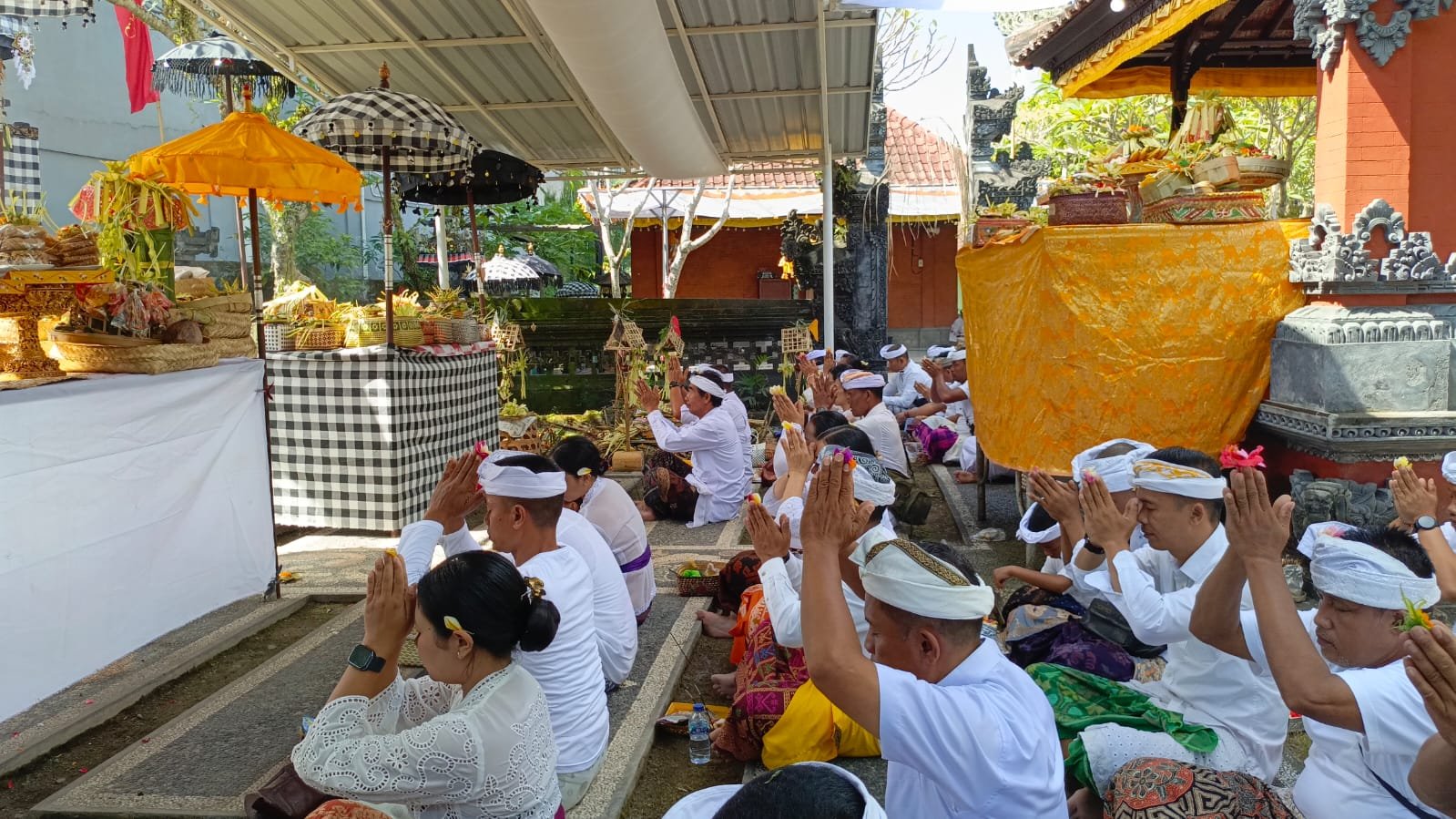 Klungkung – Pura Satya Mahottama di Kodim 1610/Klungkung menyelenggarakan persembahyangan bersama yang penuh khidmat pada Kamis (02/04/26). Kegiatan ini dilaksanakan oleh keluarga besar umat Hindu di Kodim 1610/Klungkung dalam rangka piodalan, yang jatuh pada rahina Purnama Kedasa. Upacara di piodalan kali ini dipimpin oleh Ida Perande Istri Gelgel dari Griya Pande Banjar Lebah, Semarapura Kangin, dan diikuti oleh anggota Kodim yang dipimpin oleh Pjs Pasipers, Kapten Cba Nyoman Suryatha.