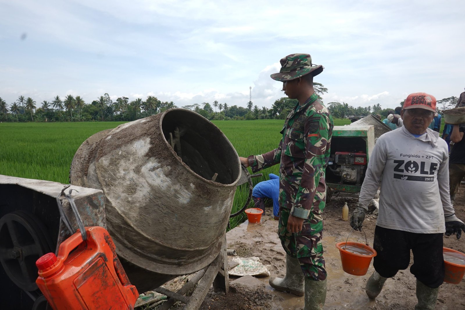 Kabupaten Pesawaran – Prajurit dari Satgas TMMD Ke-127 Kodim 0421/LS telah menunjukkan keahlian mereka dalam mengoperasikan alat Mixser adukkan. Alat ini berfungsi untuk mencampur bahan bangunan seperti semen, pasir, dan kerikil, yang sangat penting dalam proses konstruksi.