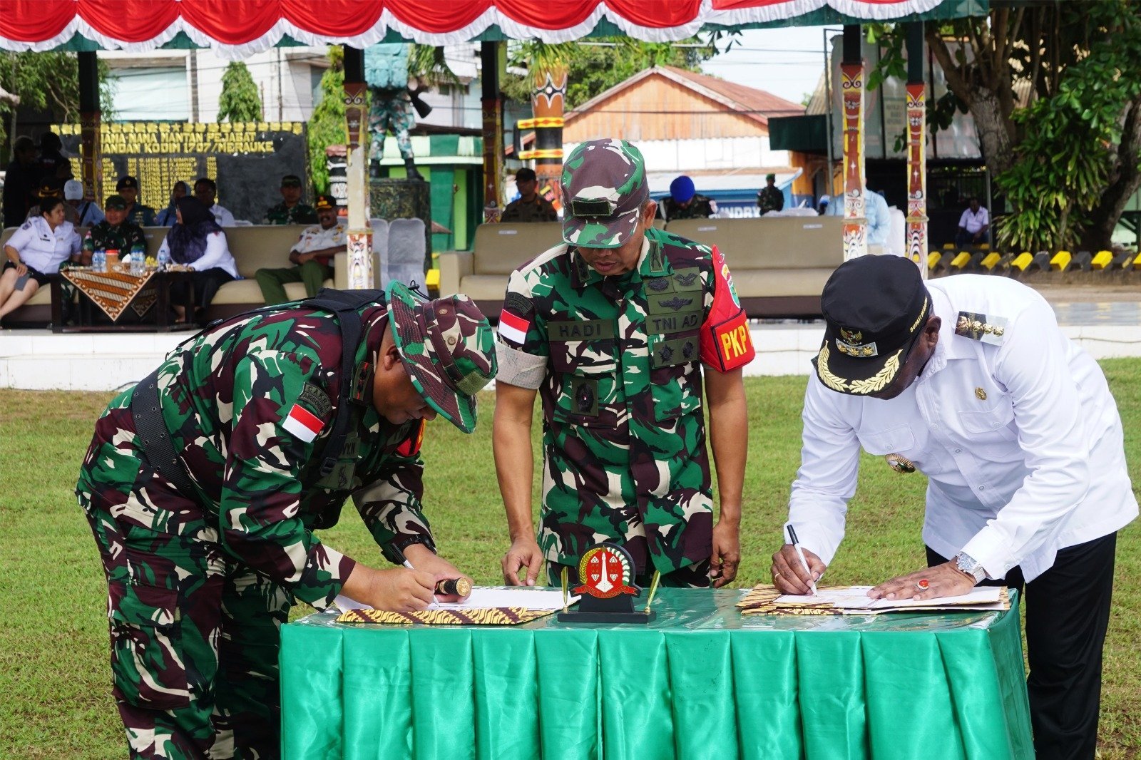 Serah terima pekerjaan secara simbolis pun dilakukan antara Bupati dan Komandan Kodim 1707/Merauke, Letkol Inf Johny Nofriady, S.E., M.Han, disaksikan Kasrem 174/ATW Kolonel Inf Ahmad Hadi Hardiono. Hadir pula Wakil Bupati Merauke, jajaran pejabat daerah, akademisi, hingga tokoh masyarakat.