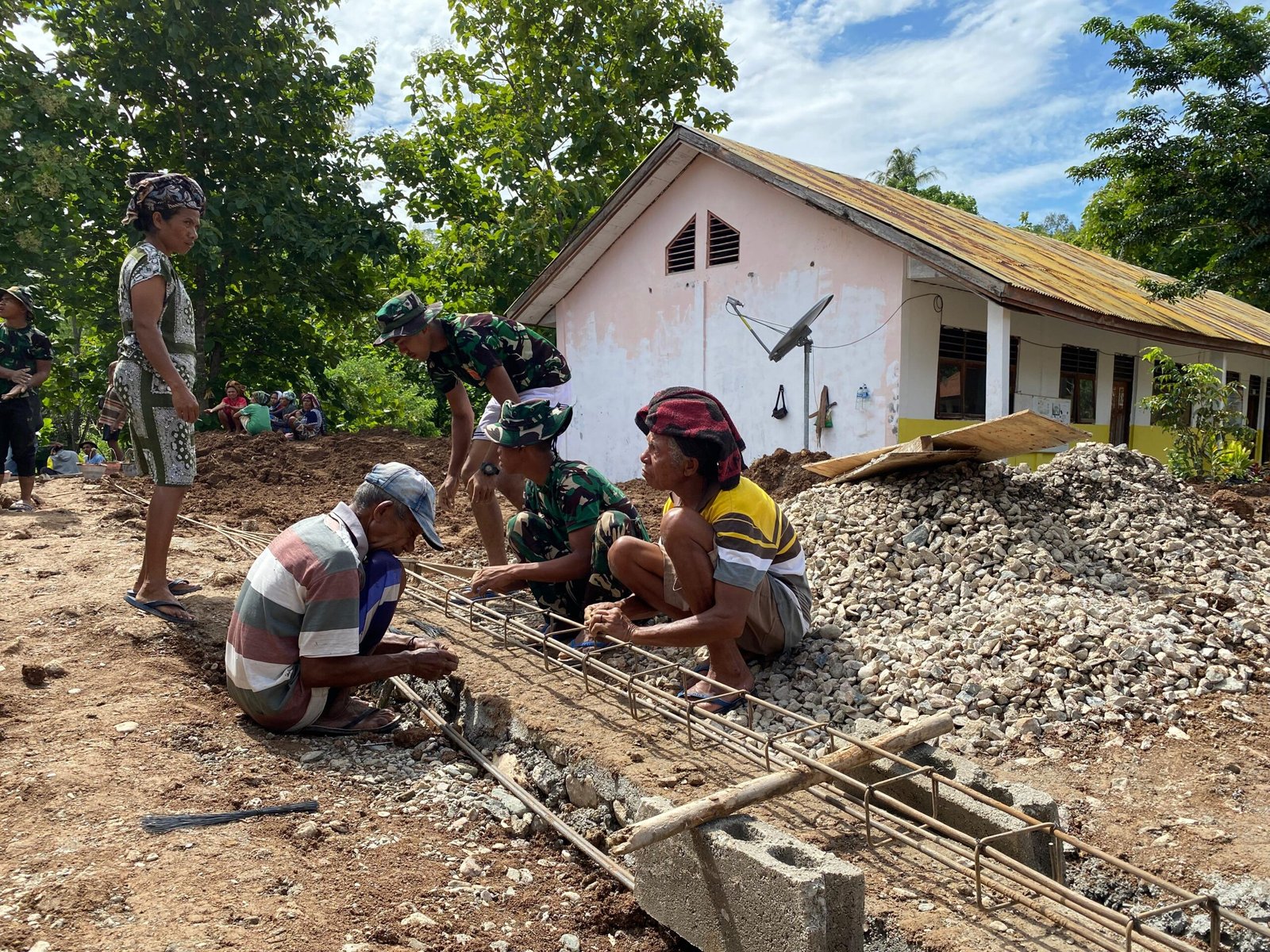 Setiap sambungan besi dirakit dengan ketelitian tinggi, memastikan bahwa struktur bangunan memiliki ketahanan yang optimal untuk jangka waktu yang panjang. Kolaborasi erat antara anggota TNI dan masyarakat lokal terlihat jelas, di mana warga turut berperan dalam pengukuran dan pengikatan, mencerminkan rasa peduli yang mendalam terhadap upaya peningkatan pendidikan di wilayah mereka.