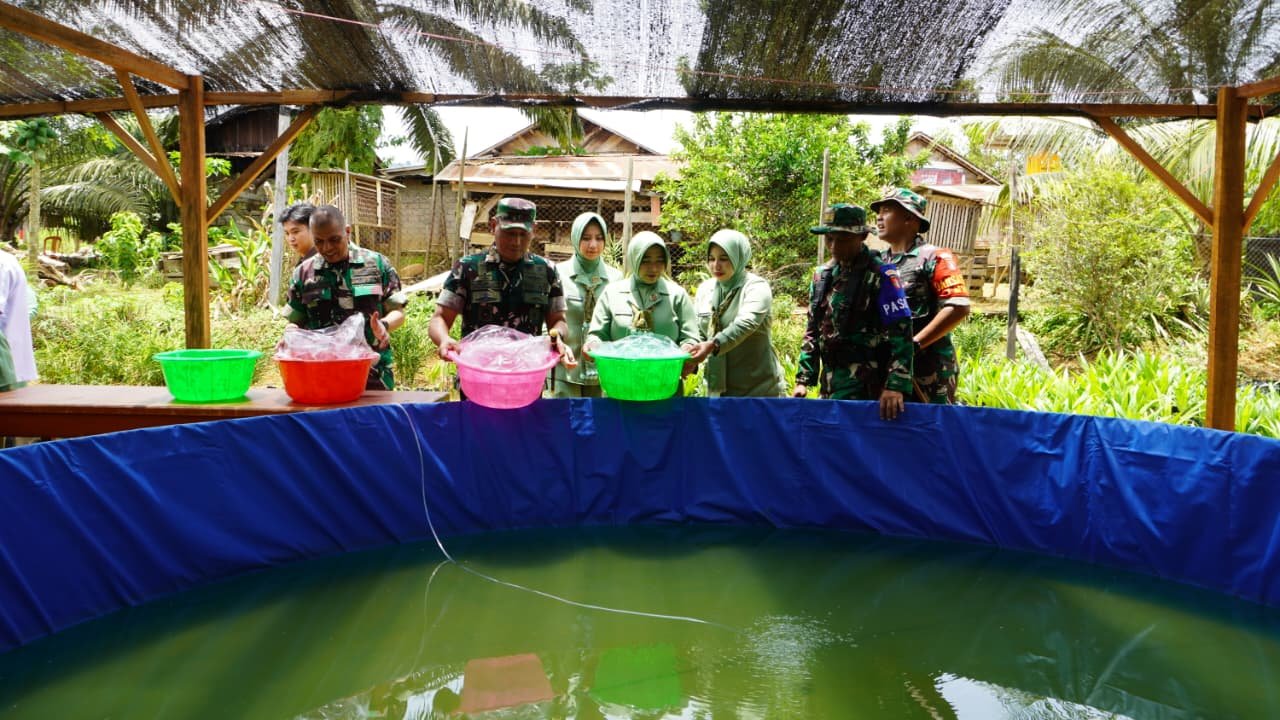 Kotawaringin Timur – Dalam rangka penutupan TMMD ke-127 Kodim 1015/Sampit, program penebaran bibit ikan nila dilaksanakan di Desa Tri Buana dengan harapan dapat meningkatkan perekonomian masyarakat setempat. Brigjen TNI Sugiyono, Kasdam XXII/TB, mengungkapkan bahwa ketahanan pangan adalah program nasional yang memerlukan dukungan dari berbagai pihak, termasuk peran aktif TNI dan masyarakat.