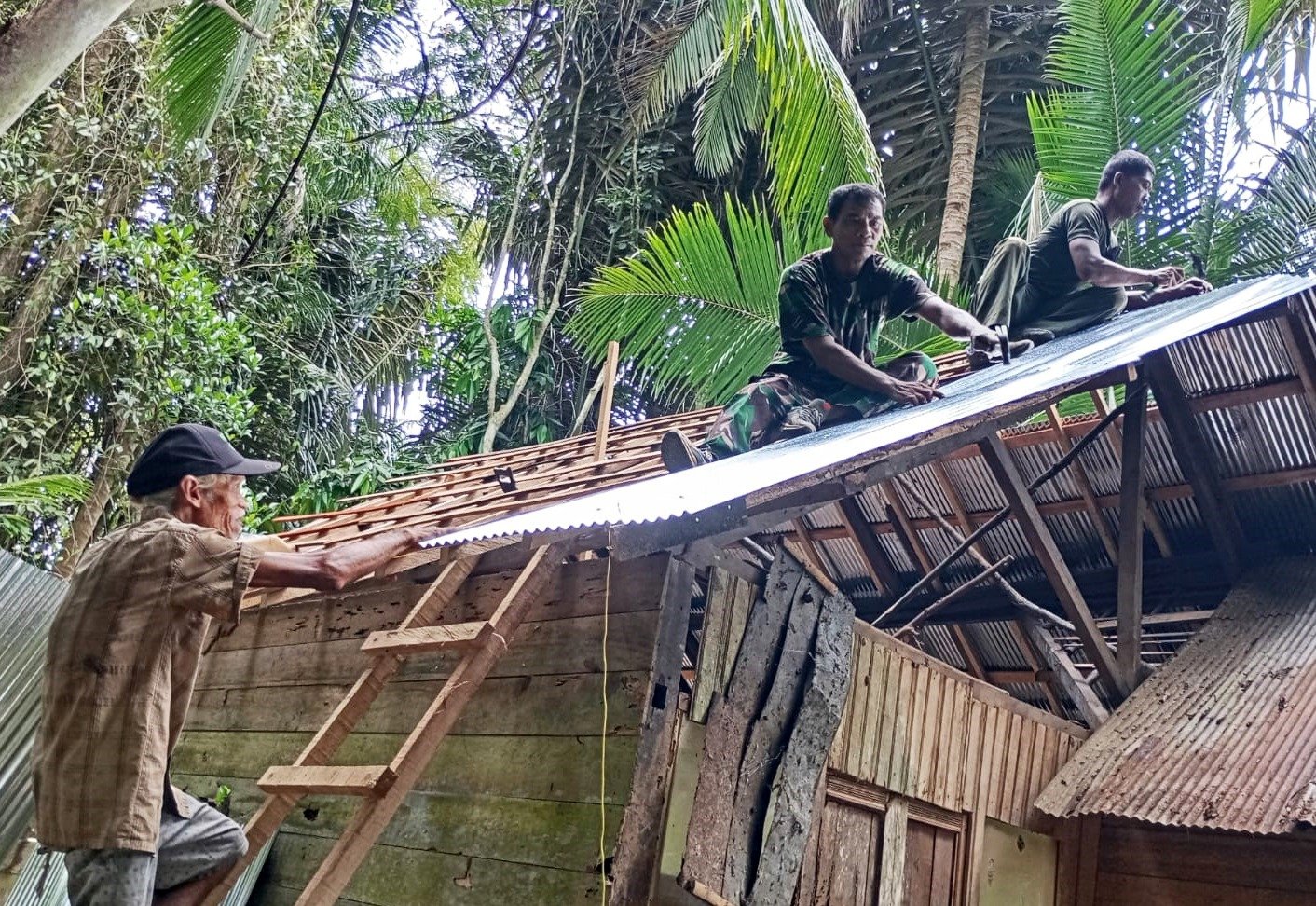 Bapak Sopiansyah mengaku terharu rumahnya dipilih menjadi sasaran program. “Sudah bertahun-tahun saya dan istri tinggal di rumah ini. Kalau hujan bocor, kalau angin kencang takut roboh. Alhamdulillah TNI mau membantu. Mudah-mudahan cepat selesai dan kami bisa tinggal dengan tenang,” ungkapnya dengan mata berkaca.